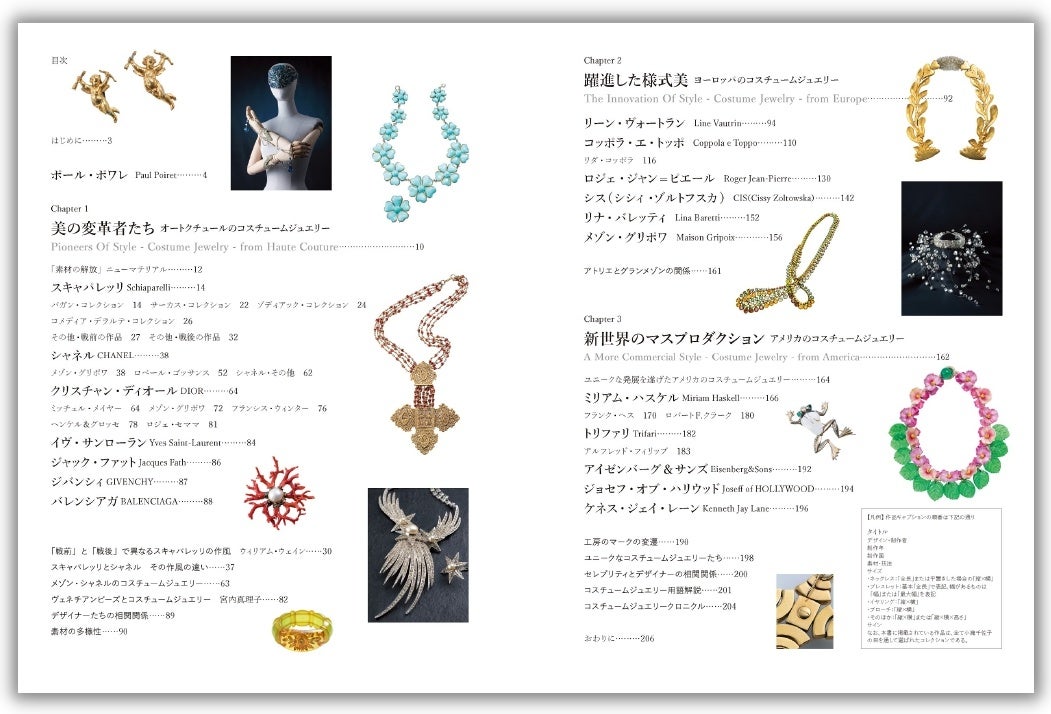 シャネル、スキャパレッリ、ディオールなど美の変革者たちが生み出したオートクチュールの精華をはじめ、メゾン・グリポワなど卓越した工房が手がけたヨーロッパのコスチュームジュエリー、ミリアム・ハスケルやトリファリほかアメリカの名品までをも収載したかつてない一冊です。