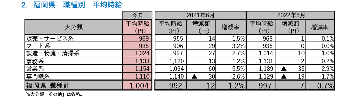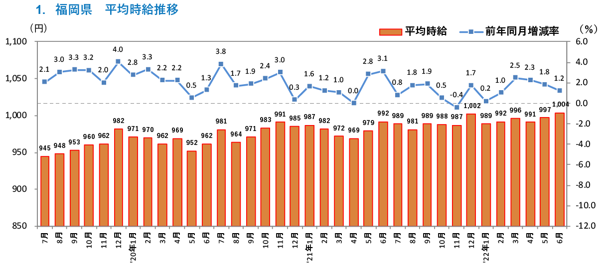 ■ 福岡県の平均時給は1,004円(前年同月992円、前月997円)