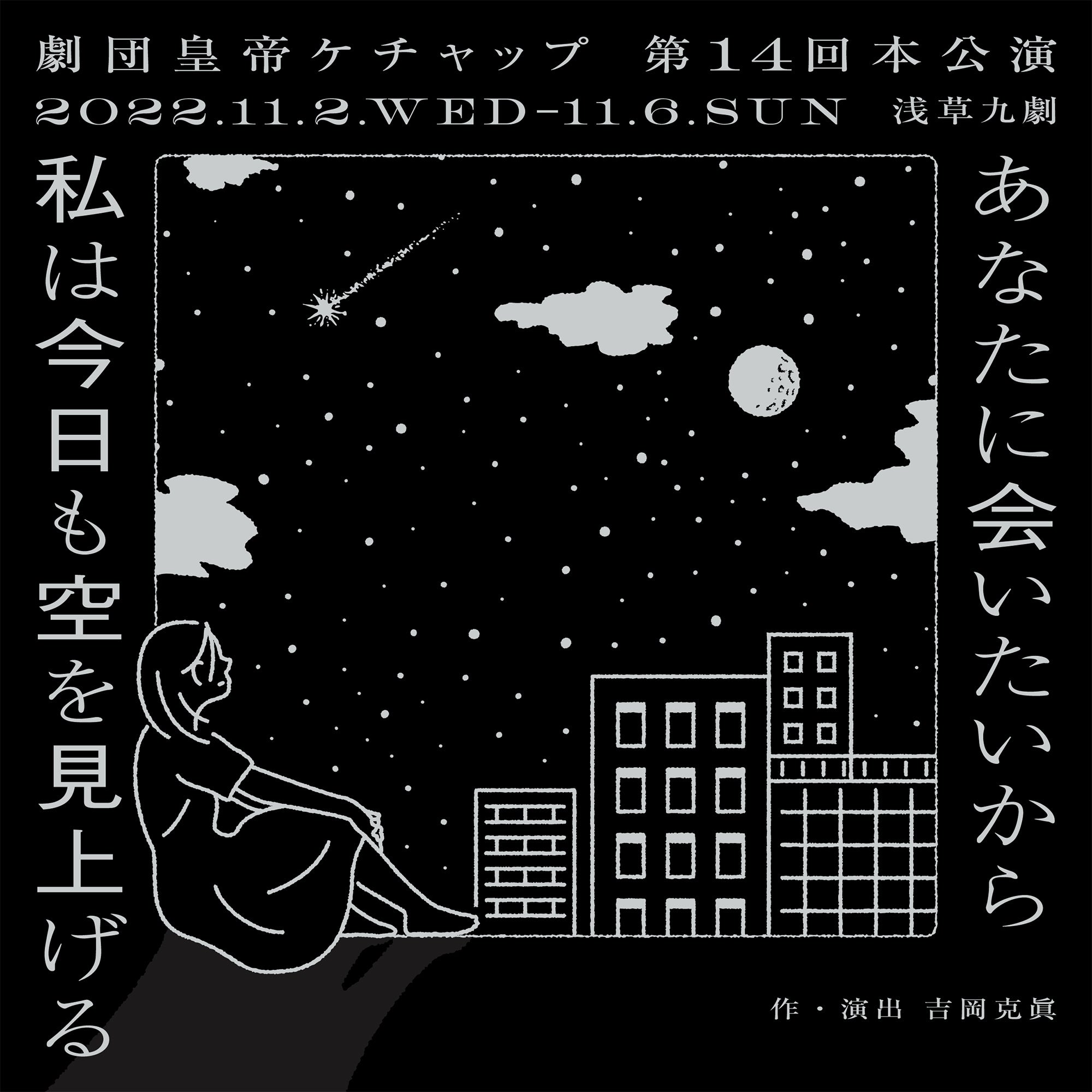 劇団皇帝ケチャップ第14回公演『あなたに会いたいから私は今日も空を見上げる』が2022年11月2日 (水) ~2022年11月6日 (日)に浅草九劇(東京都台東区浅草2-16-2浅草九倶楽部 2階 )にて上演されます。