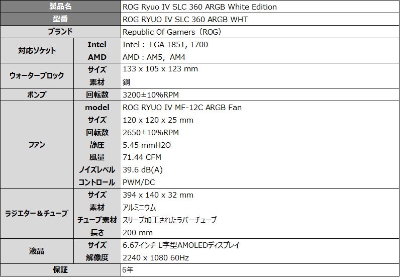 https://rog.asus.com/jp/cooling/cpu-liquid-coolers/rog-ryuo/rog-ryuo-iv-slc-360-argb-white-edition/