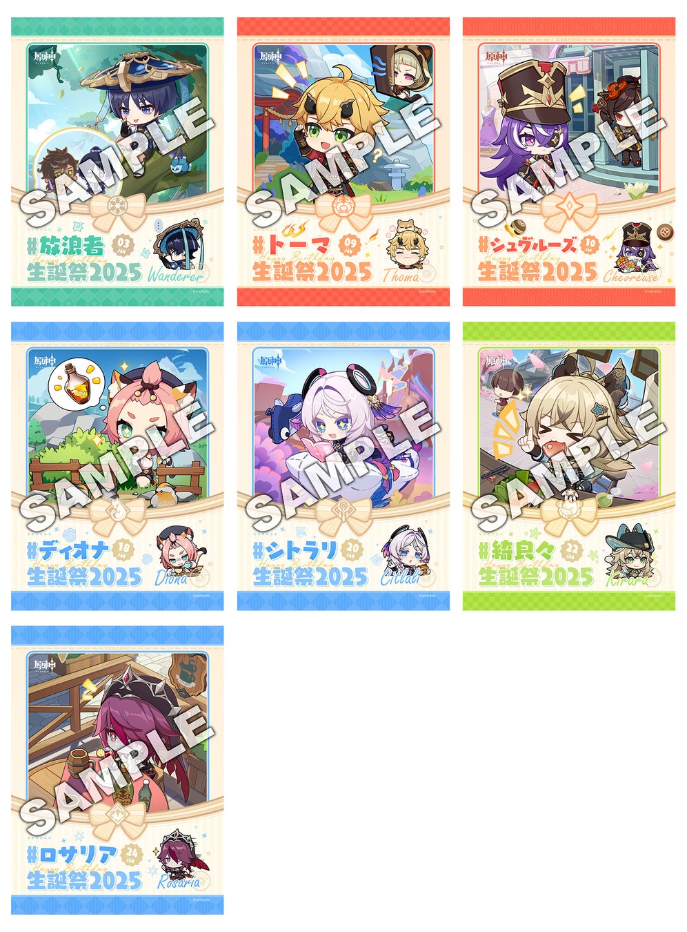 大人気ゲーム“原神”初!キャラクター生誕祭ブロマイドを「ファミマプリント」にて1月31日(金)より発売~オリジナル描きおろしカレンダーや誕生日キャラステッカーも発売~