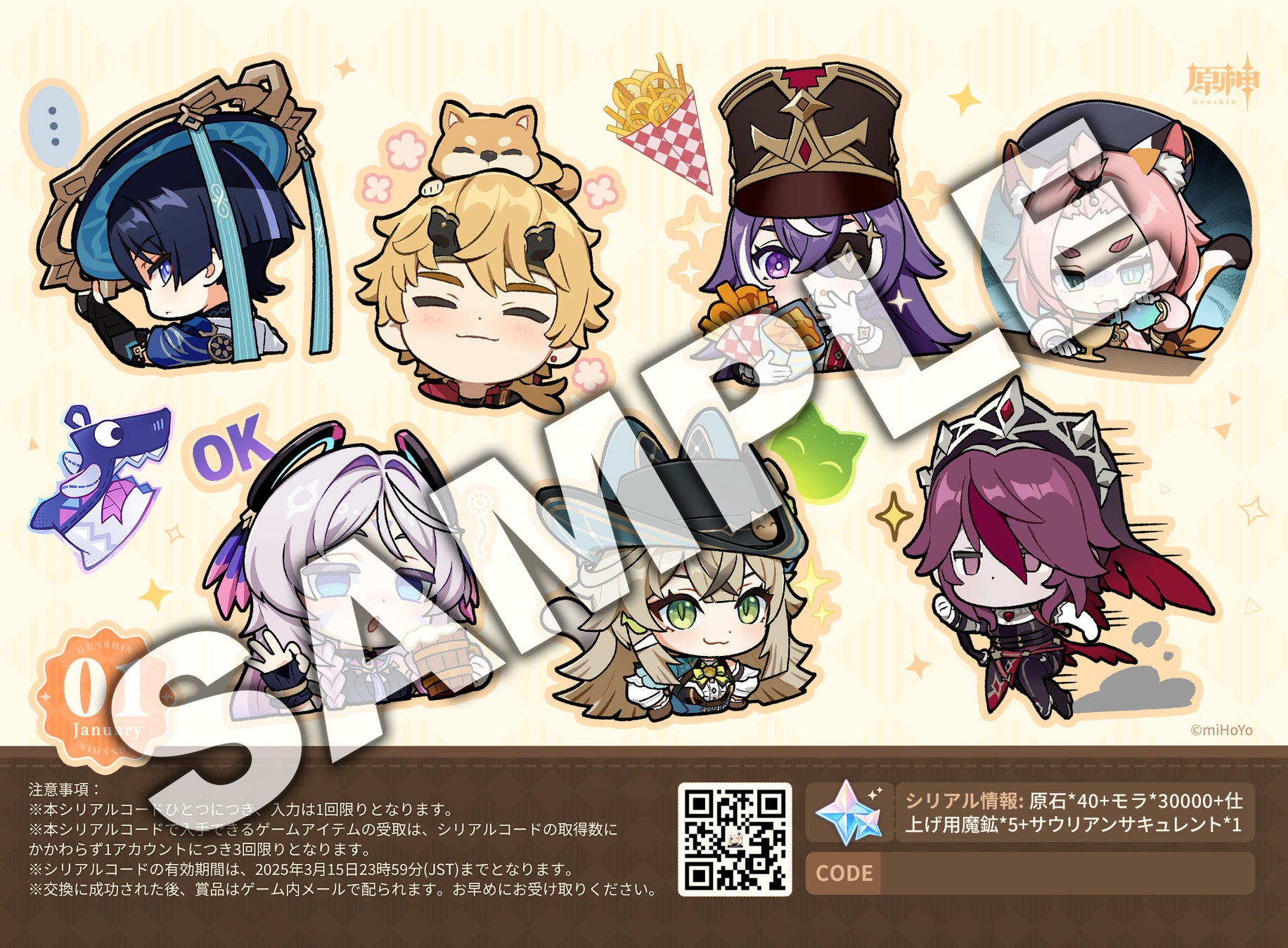 ※交換コードの登録方法は、『原神』公式サイト(https://genshin.hoyoverse.com/ja/gift)にてご確認ください。