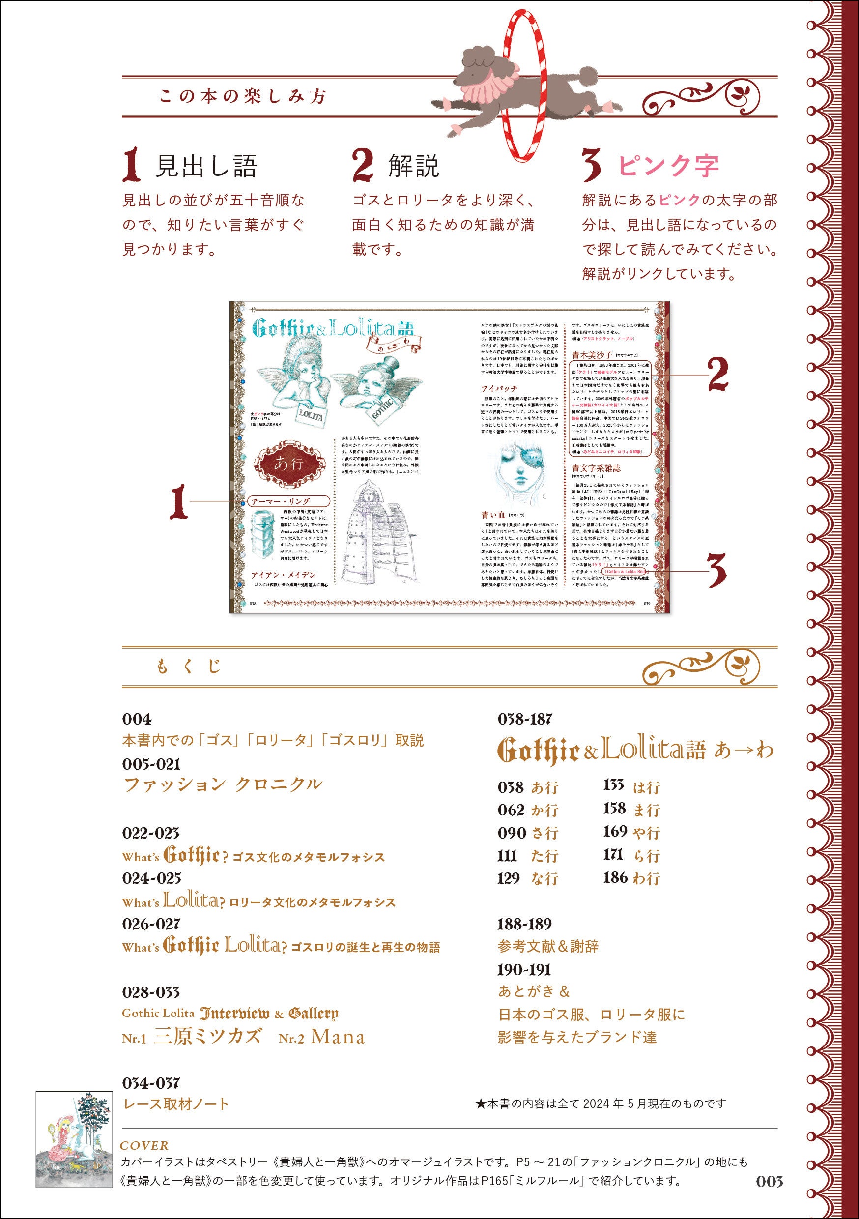 そこで、わかっているようでわかっていない「ゴスロリ」「ゴス・ロリ」「ゴシック」「ロリータ」について約600のキーワードで深く掘り下げたのが本書。