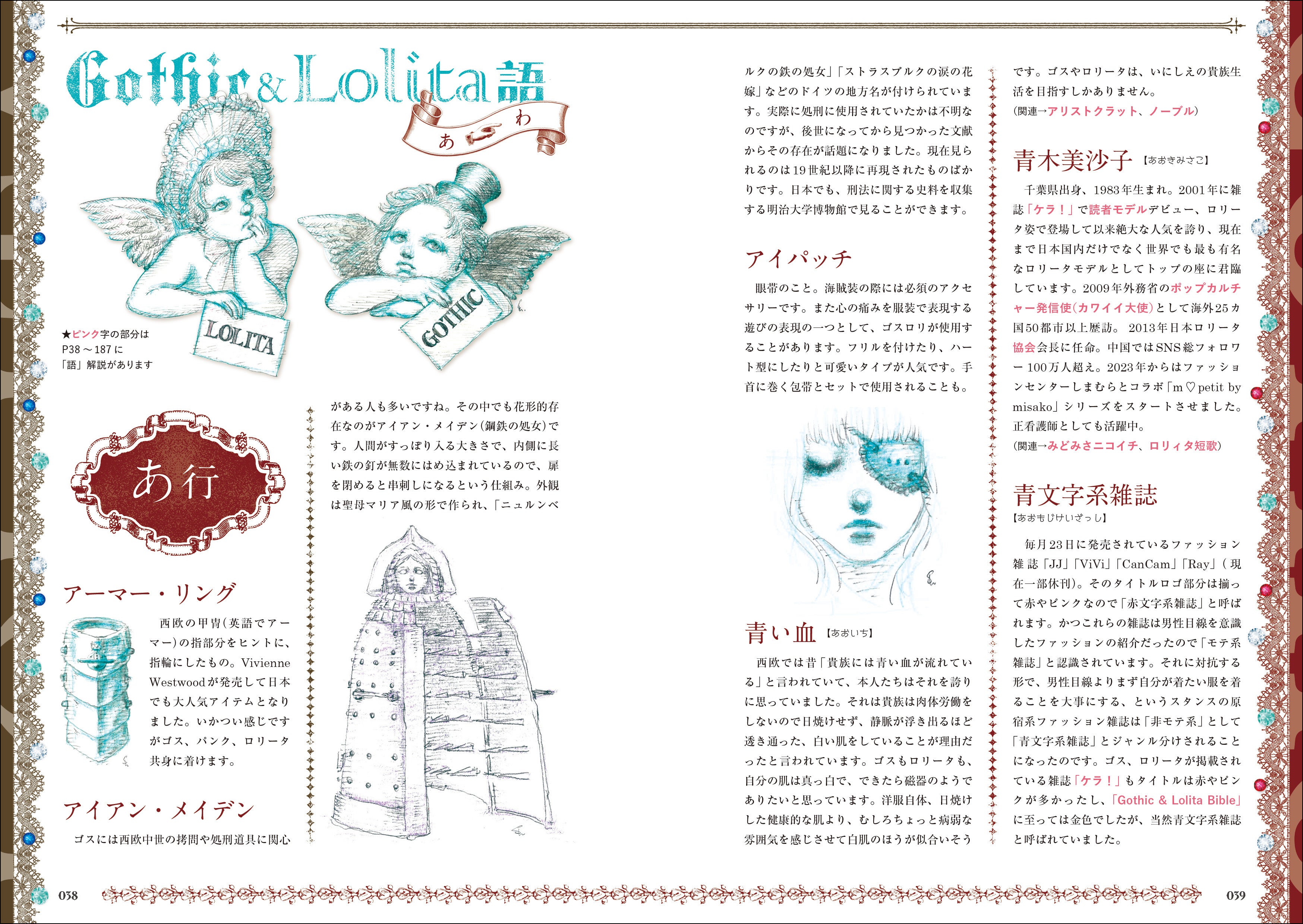 特徴的な服のパーツや身に着けるアイテム、ルーツとなった歴史や文化、ミュージシャン、人気のブランドやゴスロリたちが好む文学や美術、建築にいたるまで詰め込みました。