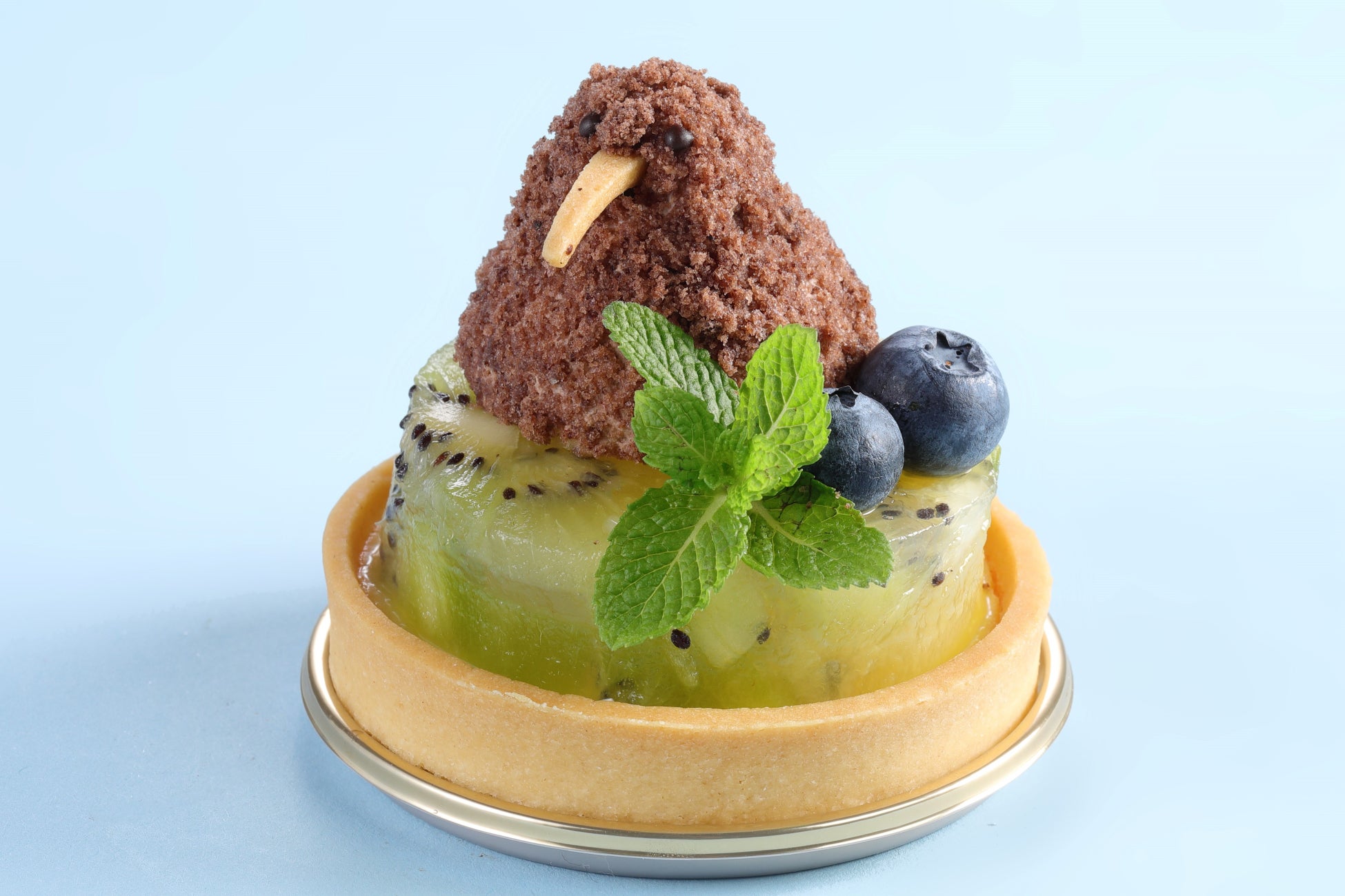 香ばしいタルト生地にバニラムースとキウイフルーツのゼリー、ニュージーランドの国鳥「キーウィ」に見立てたムースをトッピングしました。旬のブルーベリーとキウイフルーツの酸味がさわやかな、夏におすすめのタルトです。