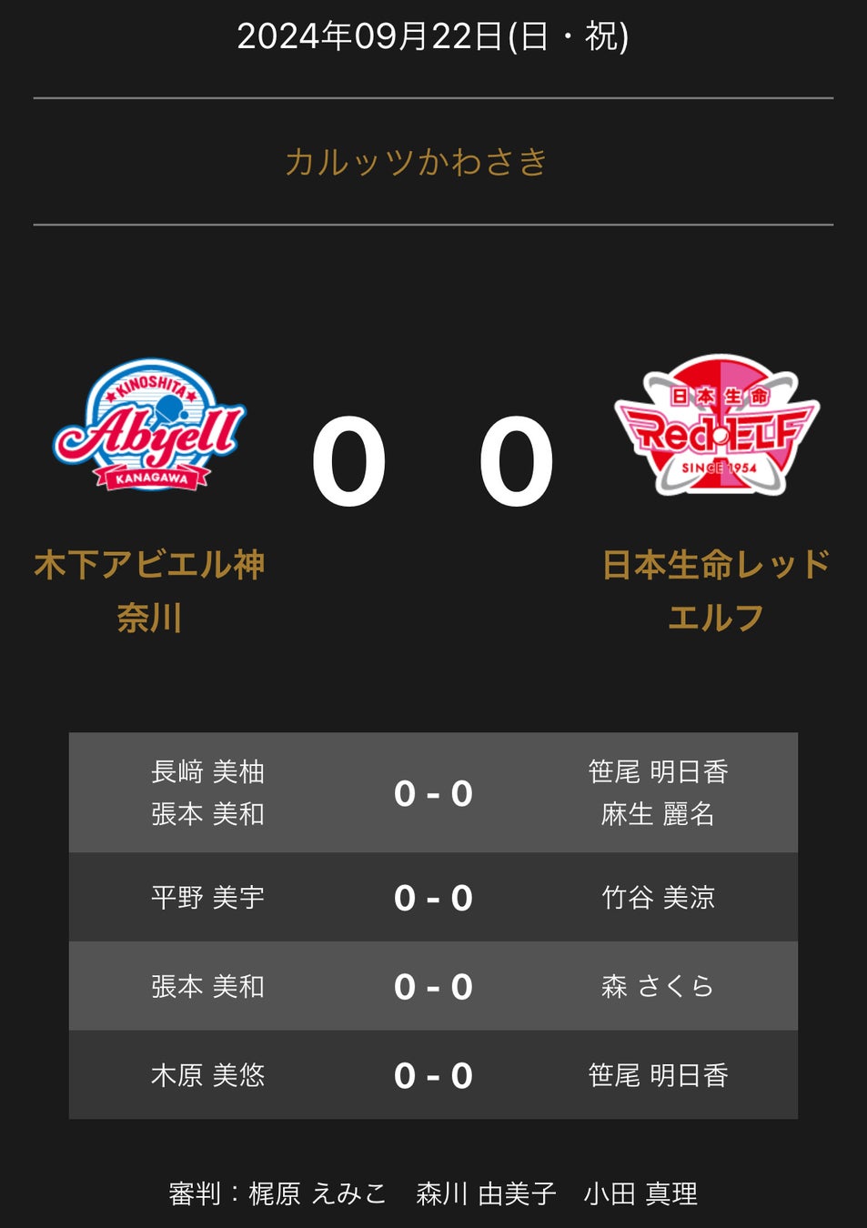 ノジマTリーグ 2024-2025シーズン 公式戦 9月22日開催 木下アビエル神奈川vs 日本生命レッドエルフ対戦オーダー発表