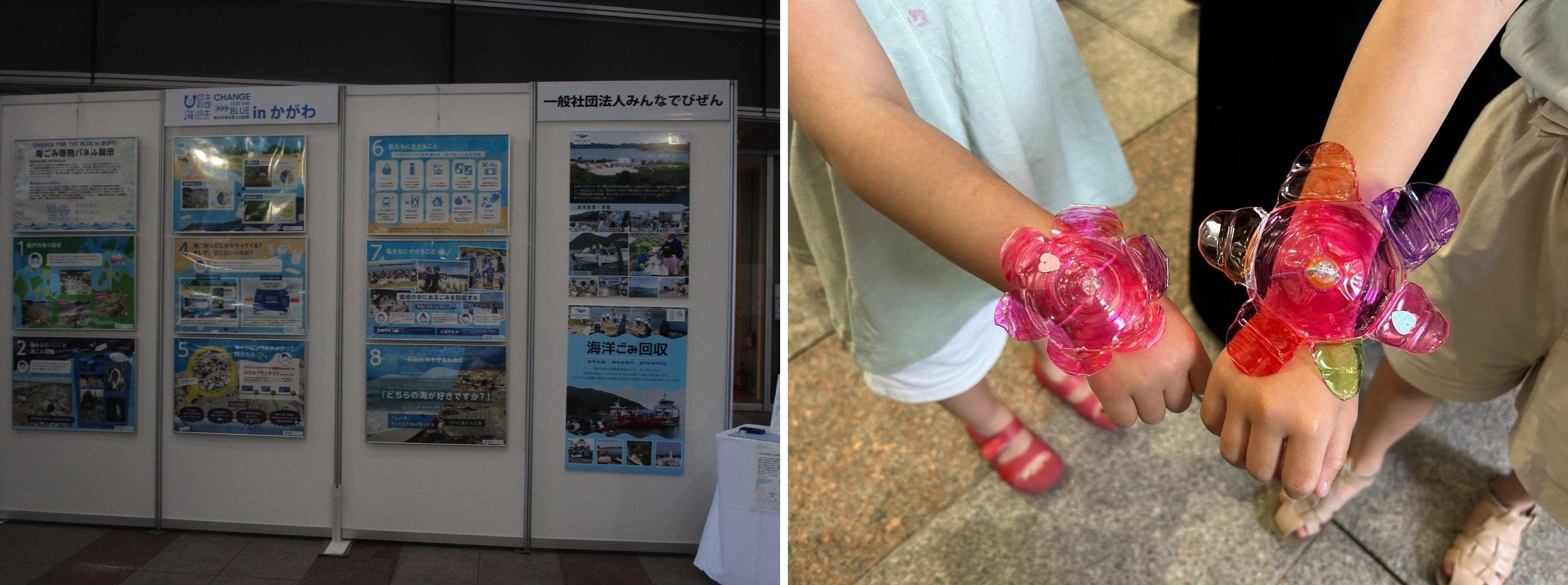 イベント会場内では海洋ごみについて啓発するパネル展示や、回収ペットボトルを使ったワークショップを行いました。