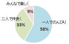 A2: 一人でのんびり 58%、 二人で仲良く 33%、みんなで楽しく 9%