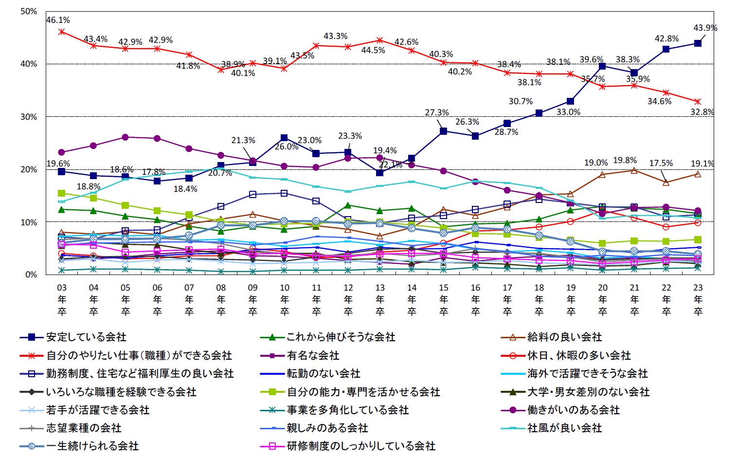 【図3】企業を選択するポイント(02年卒~23年卒)