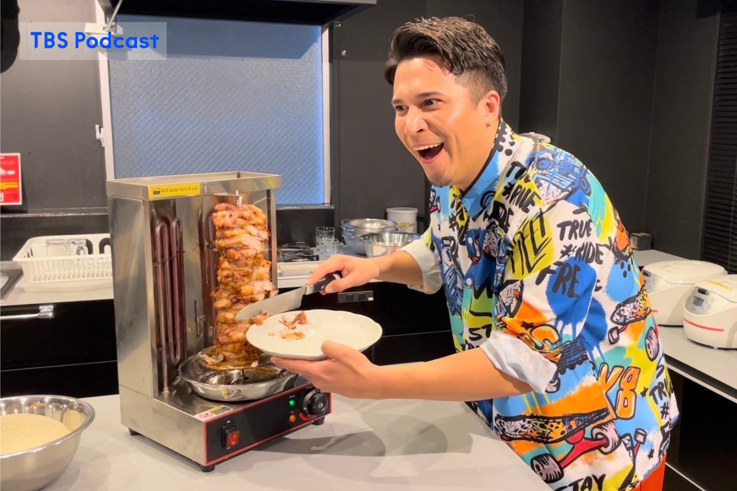 収録では、お肉がぐるぐる回る”ケバブマシーン”を使ってケバブを作り、