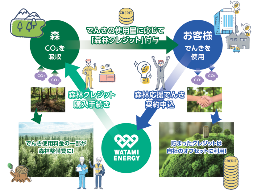 ワタミ株式会社(東京都大田区)の子会社、ワタミエナジー株式会社(以下当社)は、電気の使用量に応じて「森林クレジット(J-クレジット制度によるCO₂吸収量)」が貯まる、新たな電力プラン「森林応援でんき」を法人のお客様を対象に販売開始しました。
