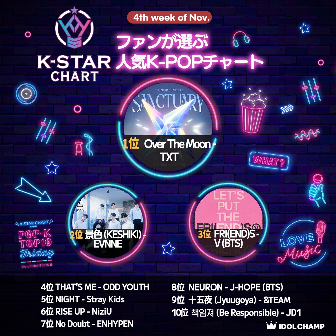 『K-STAR CHART presents POP-K TOP10 Friday』11月22日(金)の送回においてENHYPENの「No Doubt」が7位、EVNNEの「景色(KESHIKI)」が2位にチャート投票で初登場ランクインしました。
