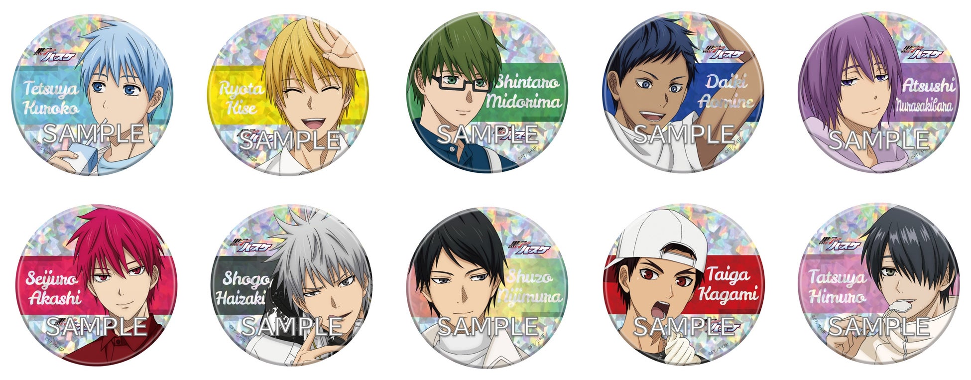 「黒子のバスケ キャラポップストア ~Hang Out in White Outfits~」の新規描き下ろしイラストを使用した缶バッジです。