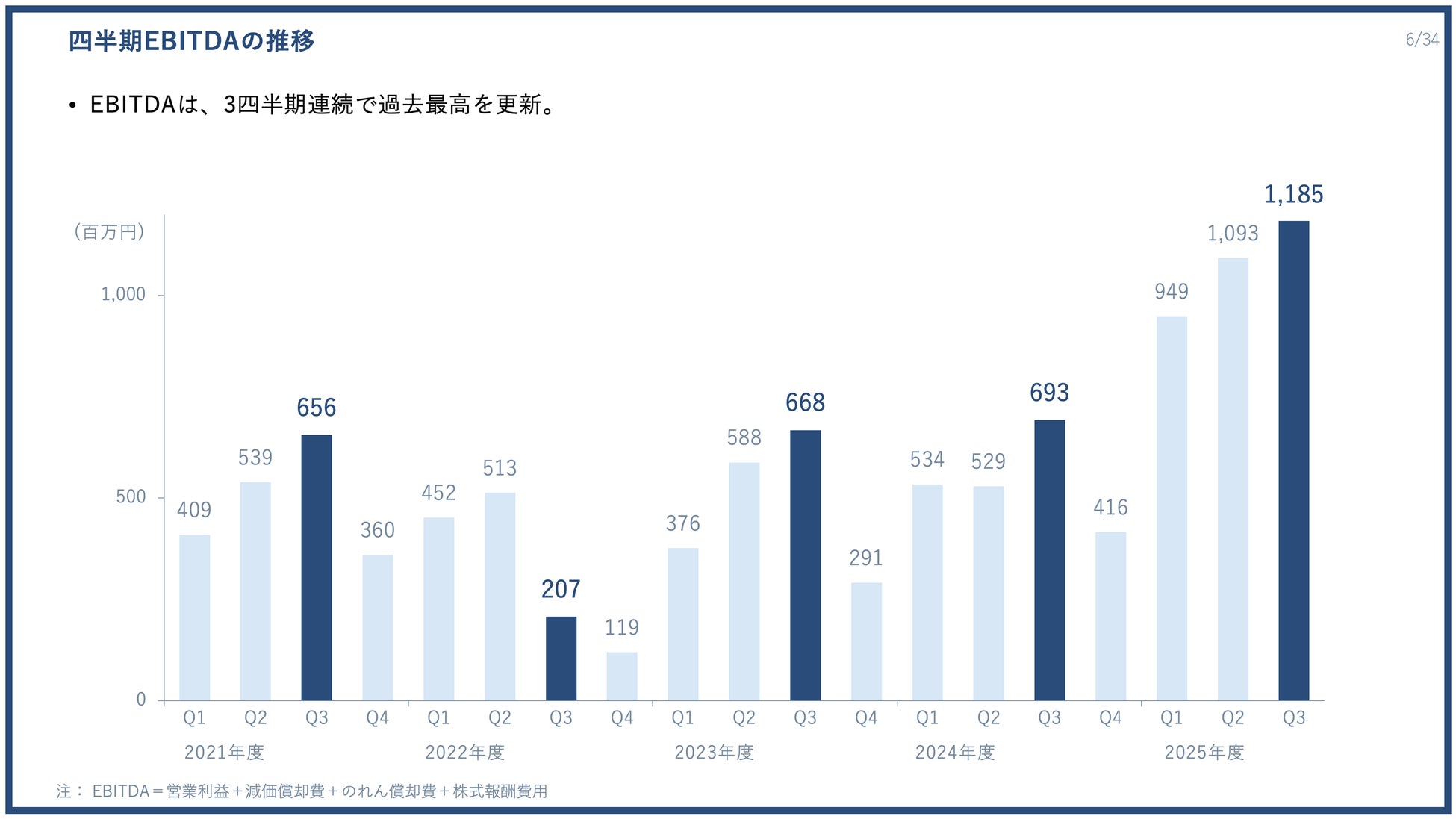 続いて、四半期EBITDAと四半期営業利益も同様に3四半期連続で過去最高を更新しました。