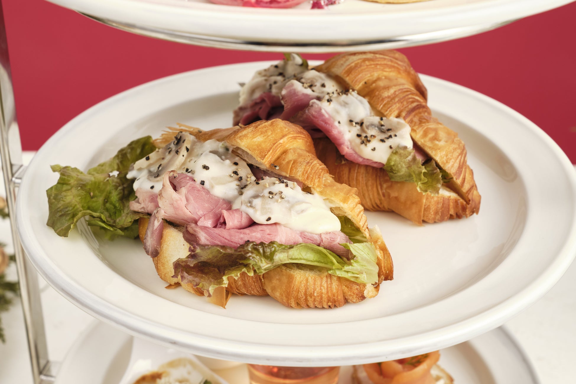 中段には「RITUEL」で人気の「クロワッサン」に、クリスマスの定番「ローストビーフ」をサンドし、マッシュルームとホワイトソースをかけた期間限定の「クロワッサンサンド」が並びます。