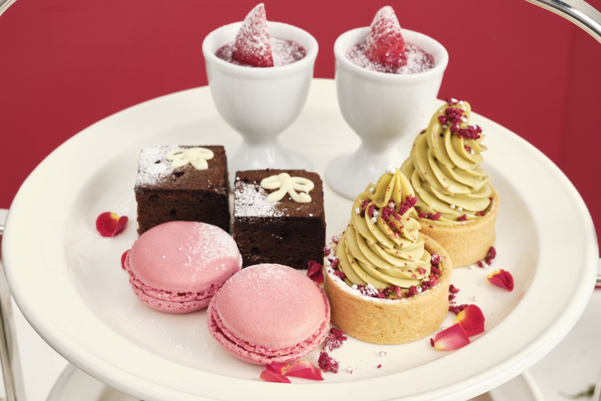 ベリーレアチーズケーキ、ピスタチオのツリータルト、ベリーマカロン、ギフトブラウニーケーキ