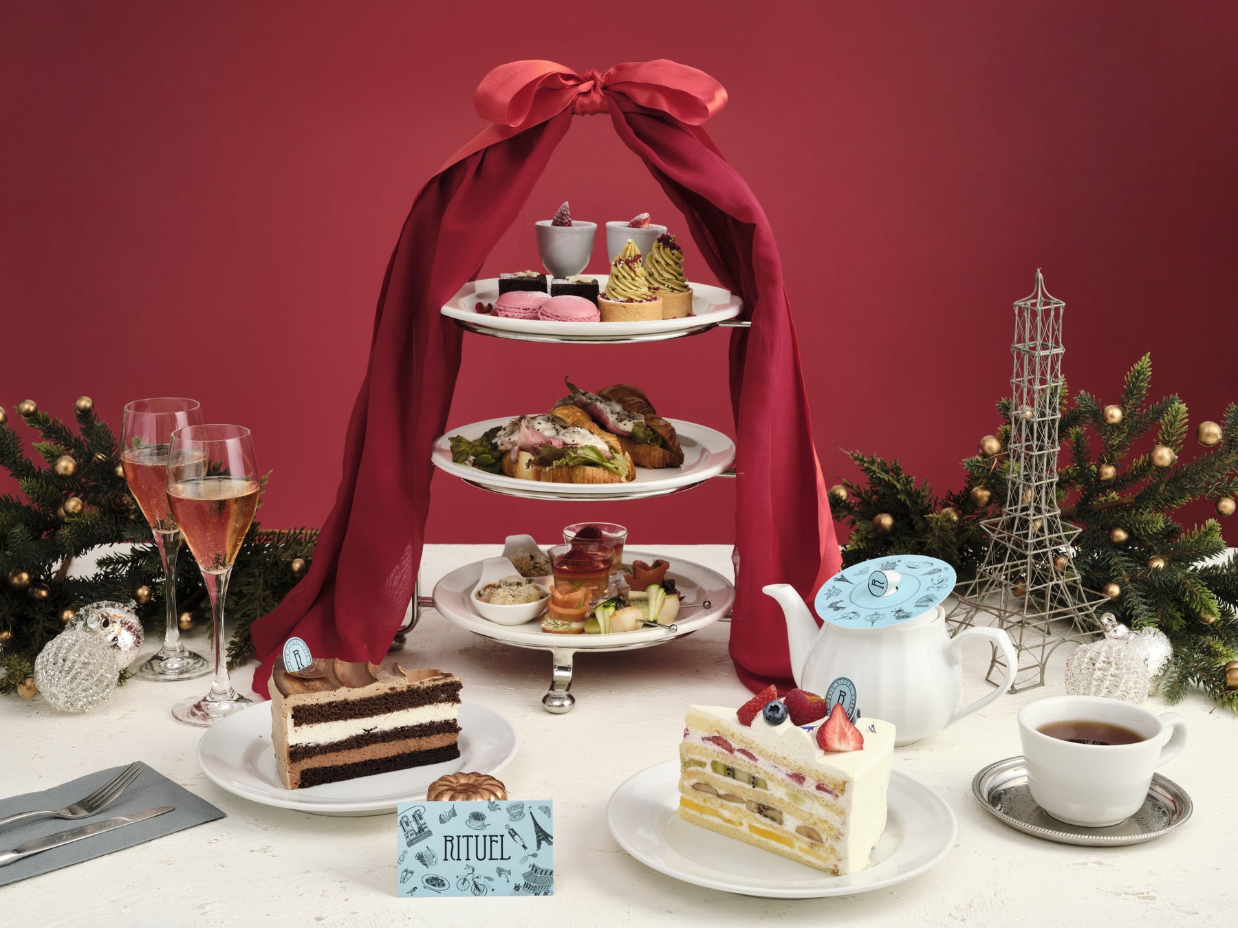 今年は赤いリボンでデコレーショした、ホリデーシーズンの高揚感をさらに高める特別な「クリスマスアフタヌーンティー」が登場!