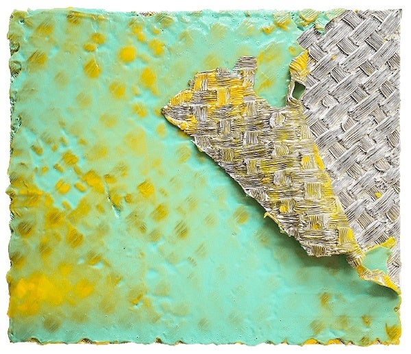 ↑●peel #04(2022/acrylic,spray,medium,panel/H455×W530×D60mm)税込110,000円