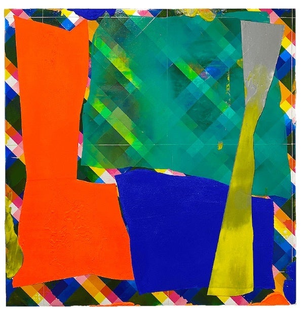 ↑●outline(check#105)2022/acrylic,pigment,medium,panel/H1167×W1167×D55mm)税込418,000円