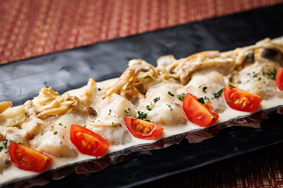 宮崎県産原木椎茸が香る白身魚のキノコクリームソース