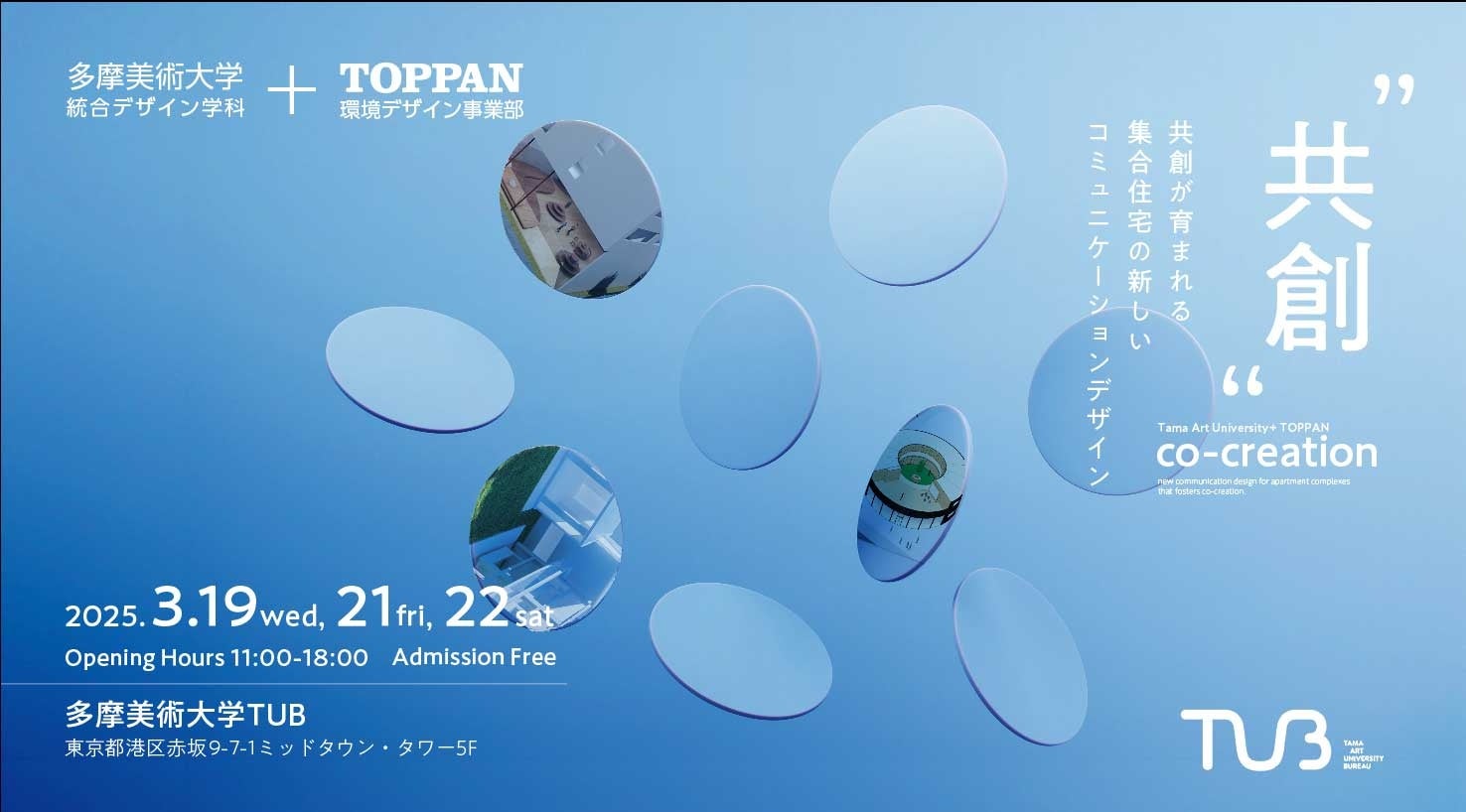 TOPPAN株式会社(本社:東京都文京区、代表取締役社長:齊藤 昌典、以下 TOPPAN)は2025年3月19日(水)、21日(金)、22日(土)の3日間、TOPPAN + 多摩美 産学連携 PBL(Project Based Learning)成果報告展 「“共創“が育まれる集合住宅の新しいコミュニケーションデザイン」(会場:東京ミッドタウン・タワー5F 東京ミッドタウン・デザインハブ内)に出展します。