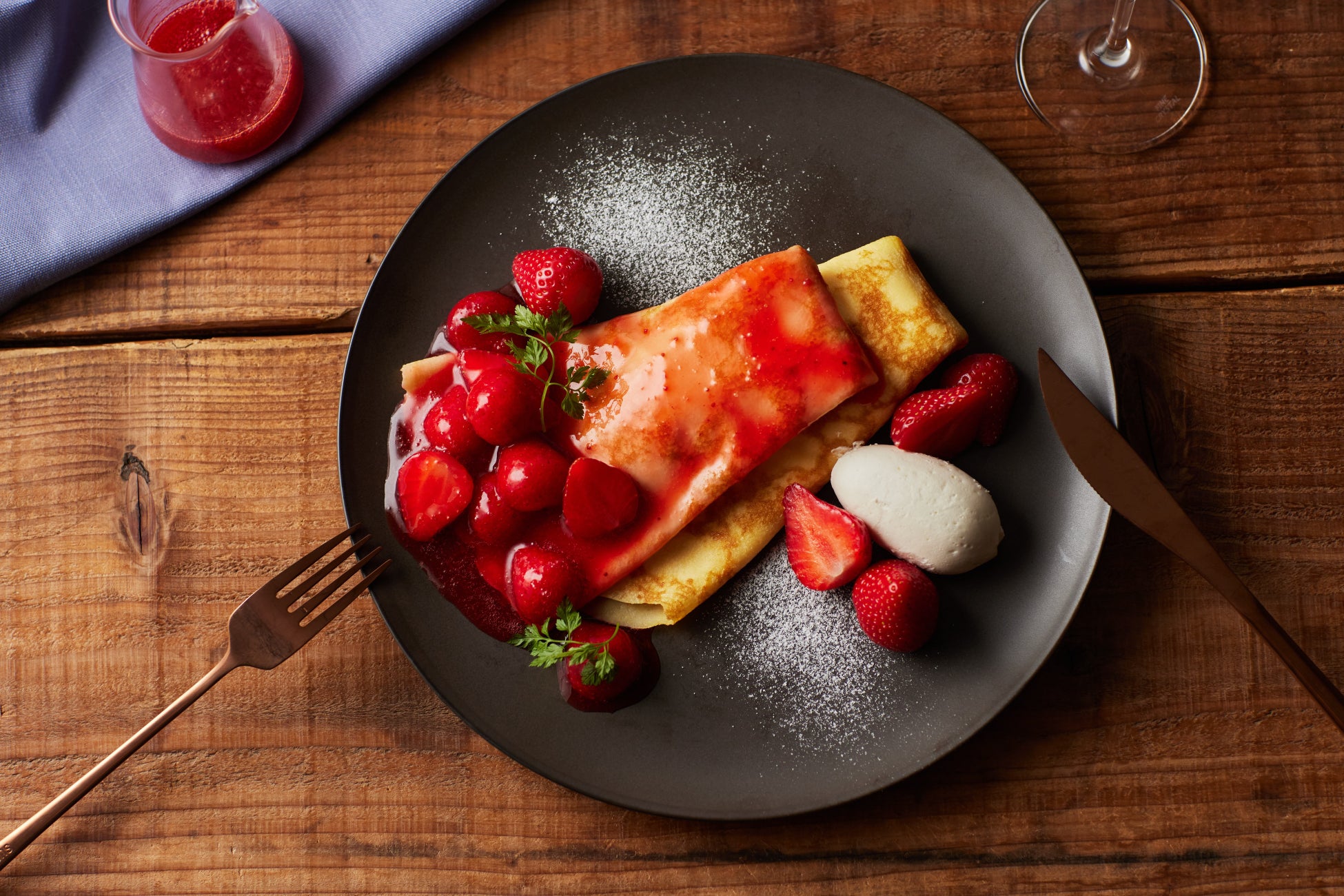 2 摘みたてのいちごを贅沢に使ったクレープシュゼット