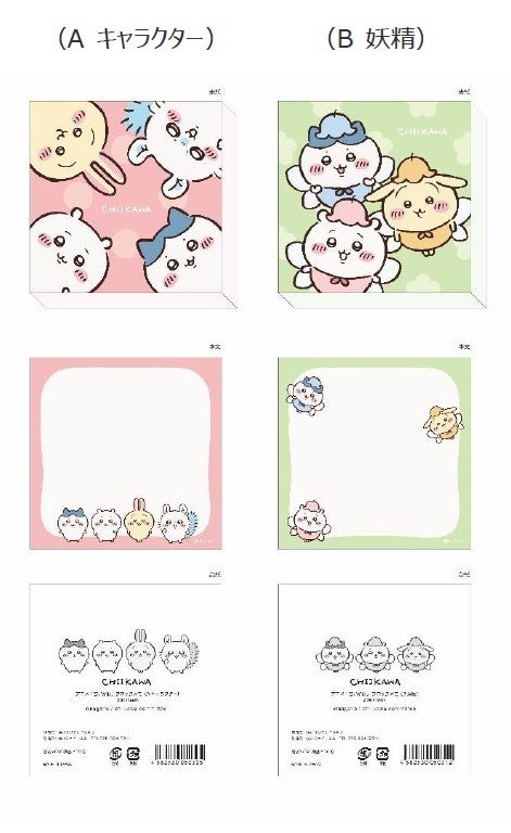 ■アニメ『ちいかわ』 ブロックメモ(A キャラクター)(B 妖精) 各550円