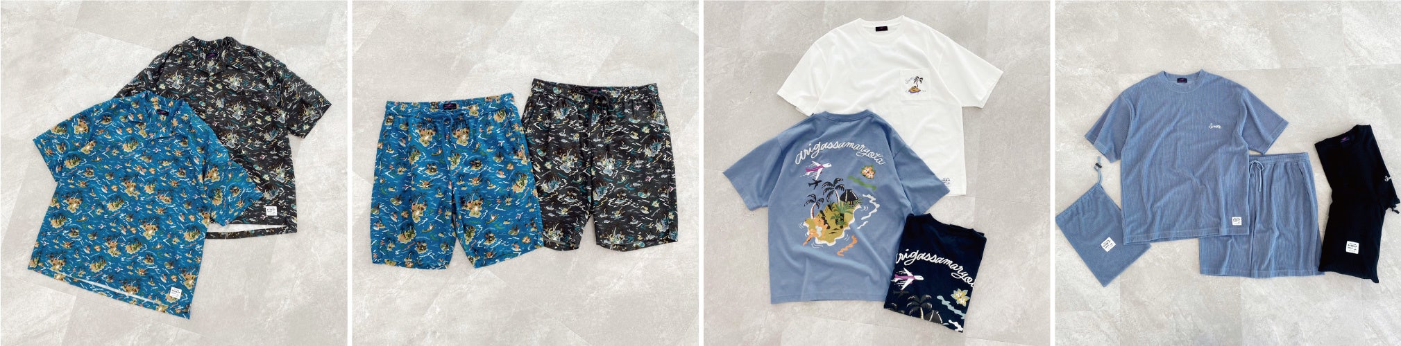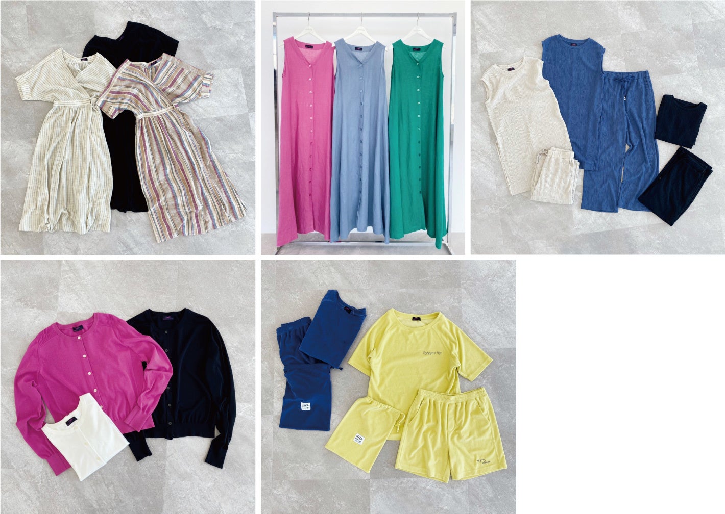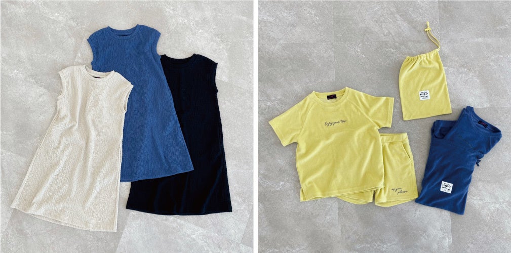 また移動の多い旅先でもストレスフリーに着ていただけるパイル生地のルームウェアセットは、ご家族でもお楽しみいただけるように、ウィメンズ・メンズ・キッズそれぞれのサイズを展開。さらにビーチにもディナーにも着映えするウィメンズのリゾートワンピースまで、バケーションのどのシーンにも寄り添う、豊富なアイテムをラインアップしています。
