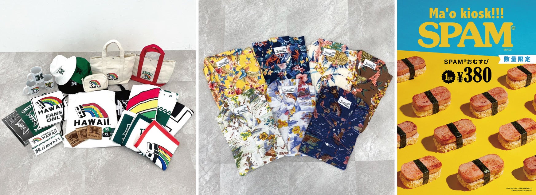 7月1日(金)から順次スタートするポップアップ『ma’o kiosk!!(マオ キオスク)』はハワイ大学にある生協をイメージ。ハワイの文化として親しみのある“生協にお土産を買いに行く“ことにフォーカスし、ハワイ大学の商品やグロッサリー、アロハシャツを展開します。また、併設しているBAYFLOW caféでは、アメリカ合衆国のホーメル・フーズが販売するランチョンミートの缶詰「SPAM®︎(スパム)」を使用したハワイのB級グルメとして人気の軽食「SPAM®︎おむすび」を発売いたします。ファッションのみならず、食も含めて“ハワイ気分”をお楽しみいただけます。