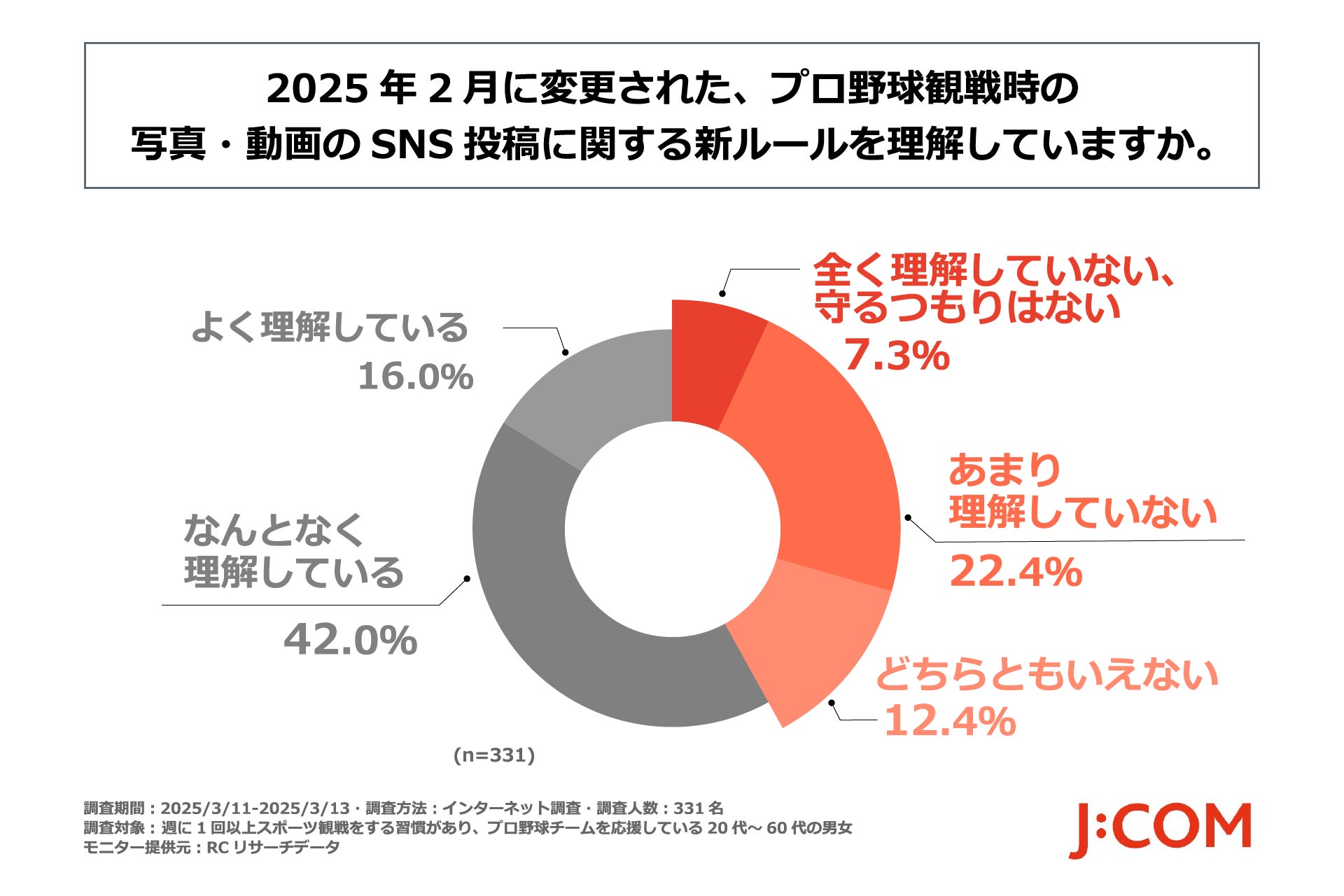 2025年2月に変更されたプロ野球観戦時の写真・動画のSNS投稿に関する新ルールについて約4割は十分に理解していない。