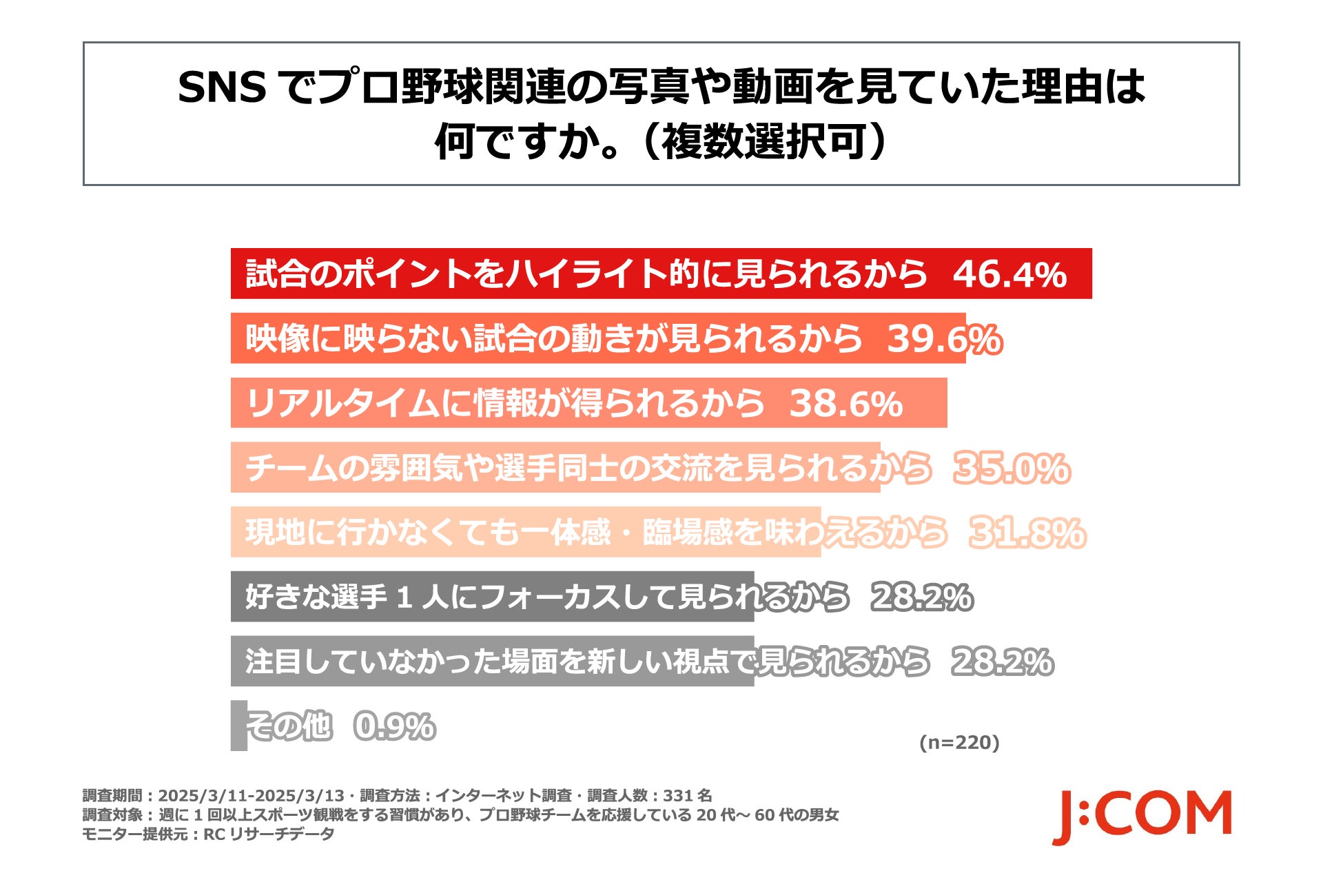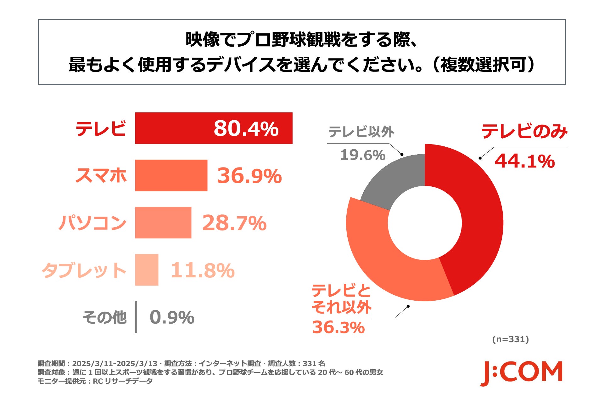 そこで、2025年シーズンもプロ野球公式戦の全試合を生中継で放送することが決定したJ:COMは、「プロ野球観戦時の視聴傾向とSNS利用の実態」に関する調査を実施しました。