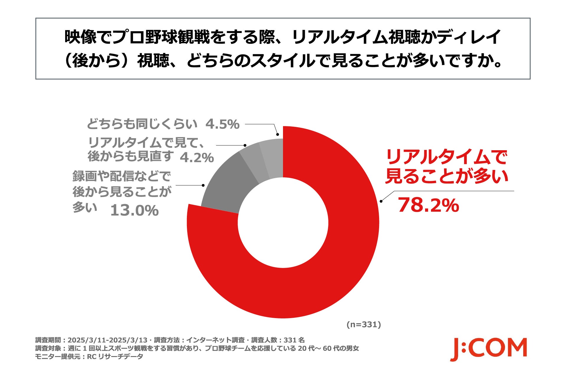 映像でプロ野球観戦をする際、「リアルタイム」で見る人が圧倒的に多い