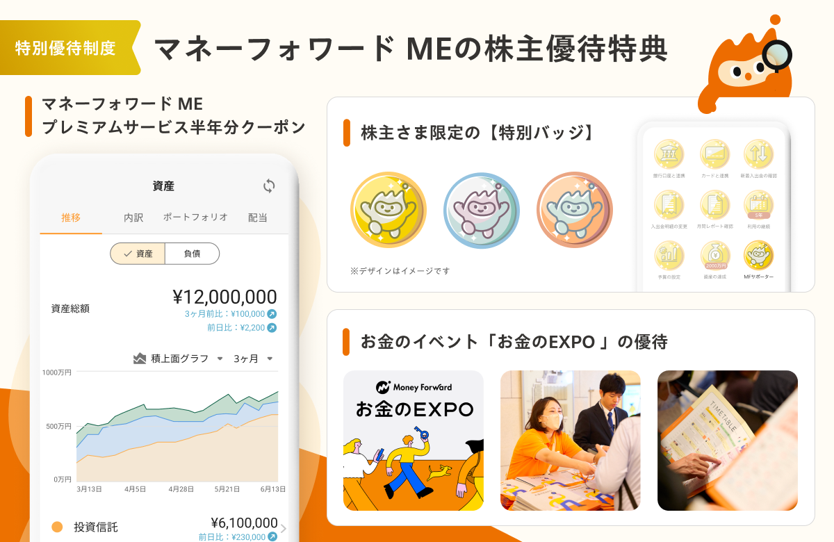 100株以上の保有で『マネーフォワード ME』プレミアムサービスクーポンを提供。株主の皆さまの資産形成を支援