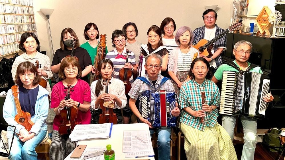 スウェーデンの音楽を楽しむスタイルを日本に! 「セッション」スタイルが北欧の生きた音楽です。スウェーデンの伝統楽器ニッケルハルパ、フィドル、アコーディオン、笛、ギターなどパレード入場し「阪神の北欧フェア」開催初日をお祝いします。
