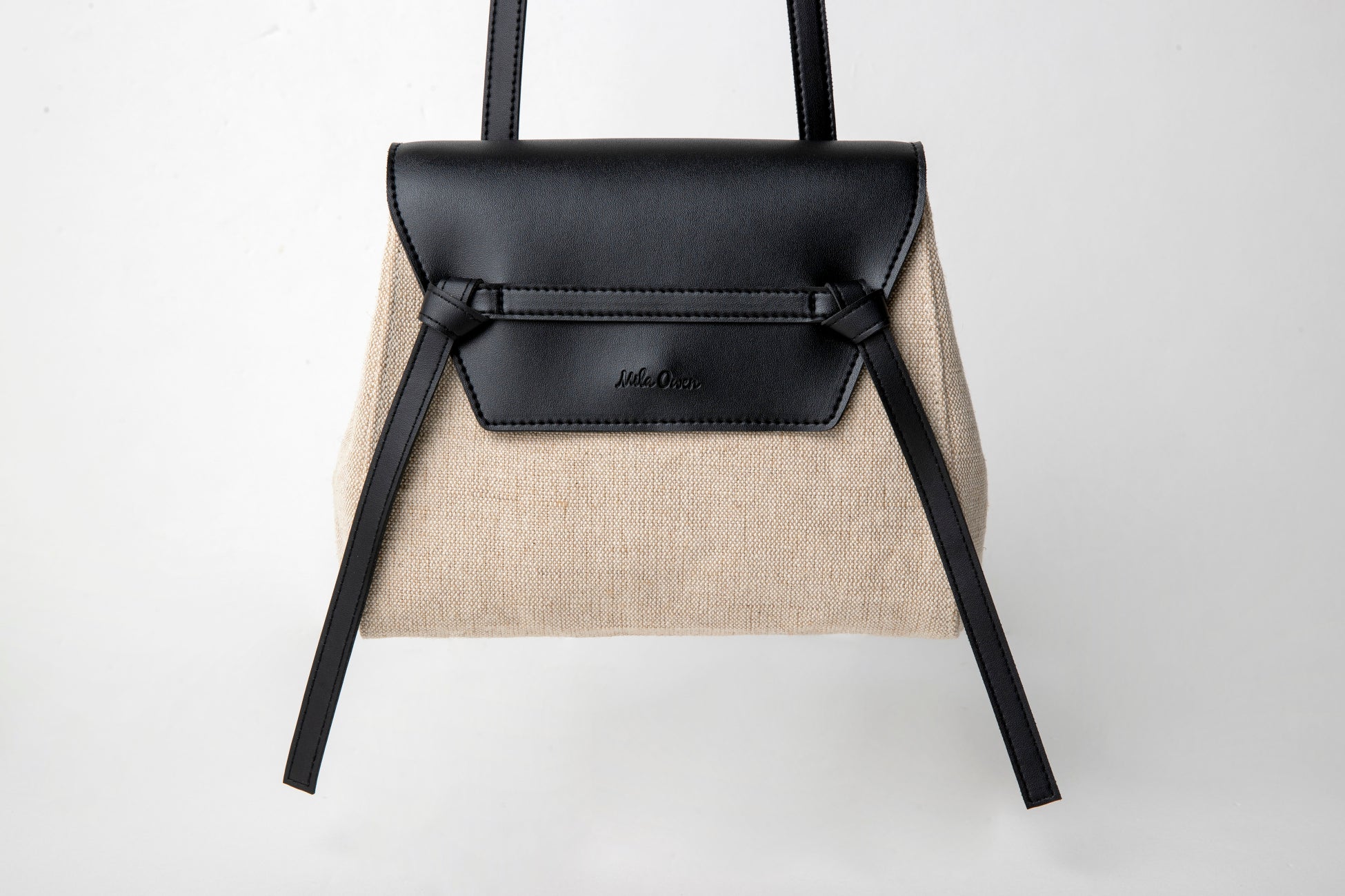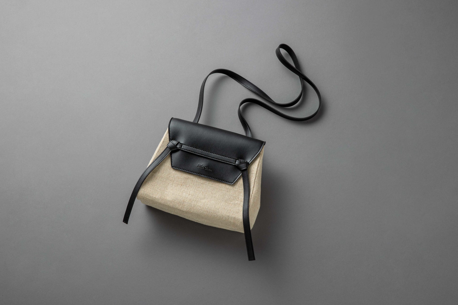 バッグの生地は、合皮×麻混キャンバス地のコンビネーションで高級感溢れる仕上がりに。