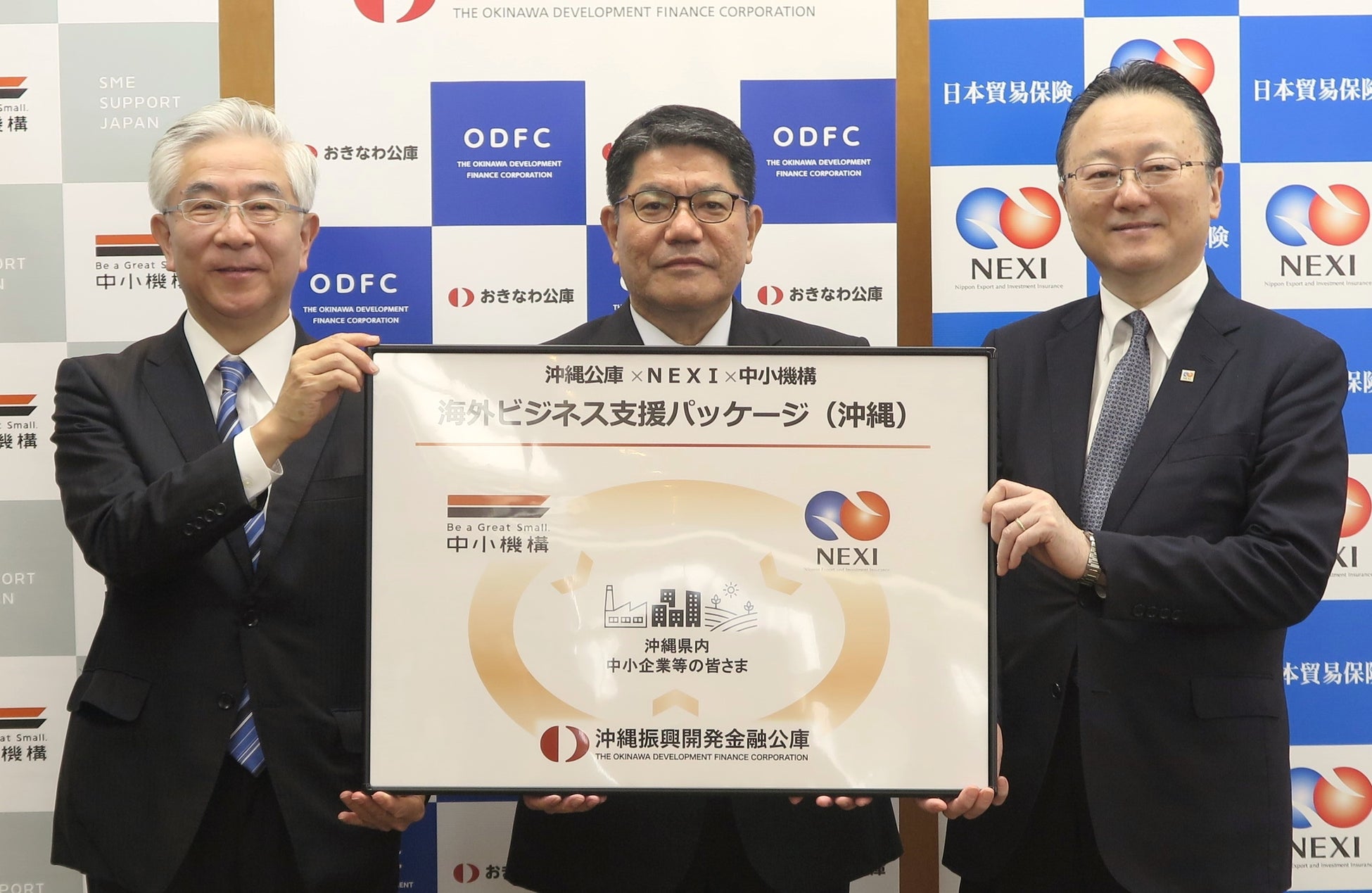 沖縄振興開発金融公庫(理事長:新垣尚之 本店:沖縄県那覇市、以下「沖縄公庫」)、株式会社日本貿易保険(代表取締役社長:黒田篤郎 本店:東京都千代田区、以下「NEXI」)、独立行政法人中小企業基盤整備機構(理事長:宮川正 本部:東京都港区、以下「中小機構」)は、この度、海外展開に取り組む沖縄県内の中小企業・小規模事業者への支援をより一層強化するため、11月22日(金曜)に覚書を締結し、「海外ビジネス支援パッケージ(沖縄)」を構築しました。