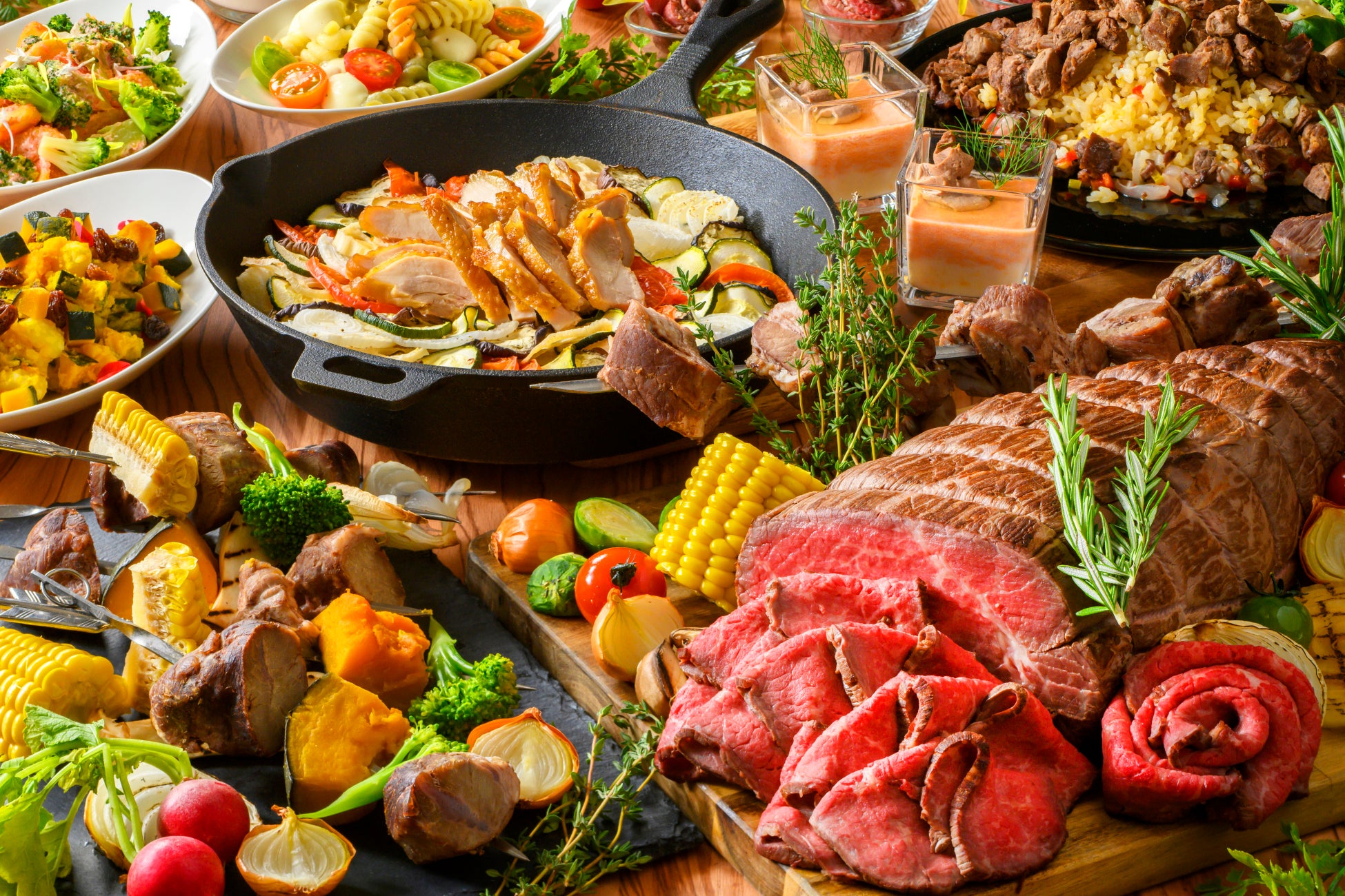 ビーフ・ポーク・チキン・ラムなど様々な肉を使い、各レストランのシェフが創意工夫を凝らした肉料理をご用意します。