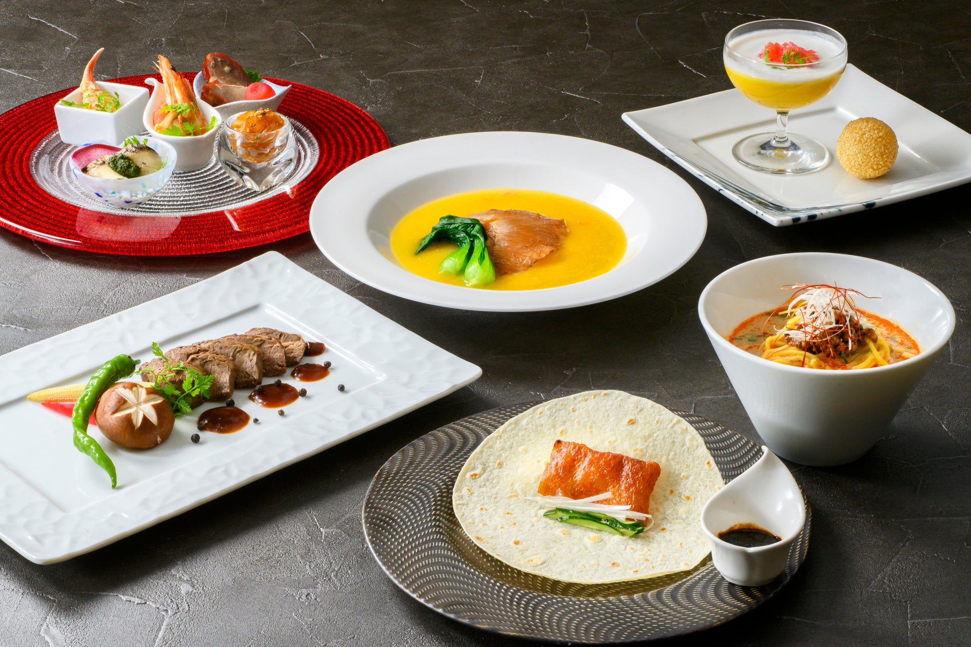 鴨ロースの生ハム / 牛肉赤ワイン煮込み / ふかひれ入りテールスープ