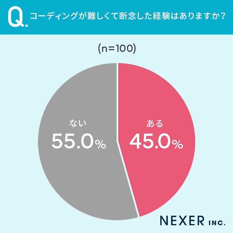 45%と半数近くの方が、コーディングが難しくて断念した経験が「ある」と回答しています。