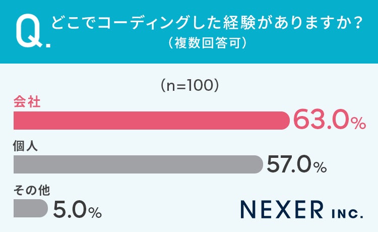 ということで今回は株式会社くまwebと共同で、事前調査で「コーディング経験がある」と回答した全国の男女100名を対象に、「コーディング」についてのアンケートをおこないました。