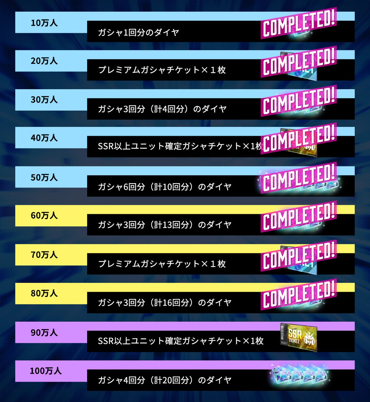 事前登録キャンペーンの達成報酬を100万人突破まで追加!!
