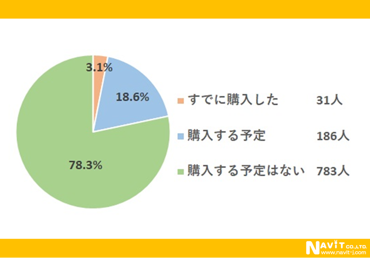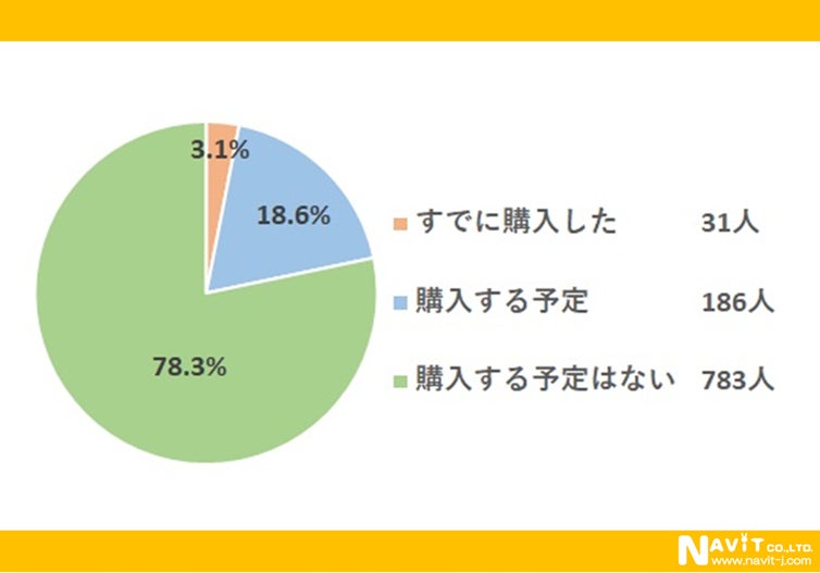 ハロウィンにちなんだ商品を購入する予定は「ない」が781人。「すでに購入した」が31人で、「購入する予定」は186人。