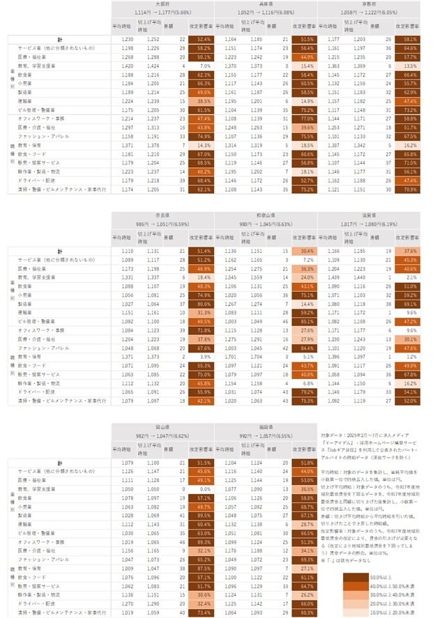 本調査は、改定が決定した2025年度の「地域別最低賃金」と、当社運営の求人メディア『イーアイデム』・採用ホームページ構築サービス『Jobギア採促』を利用して公表されたパート・アルバイトの時給データをもとに調査・分析しました。これにより、新たに設定される「地域別最低賃金」が、パート・アルバイトの募集時賃金にどの程度影響を与えるかの予測をまとめています。