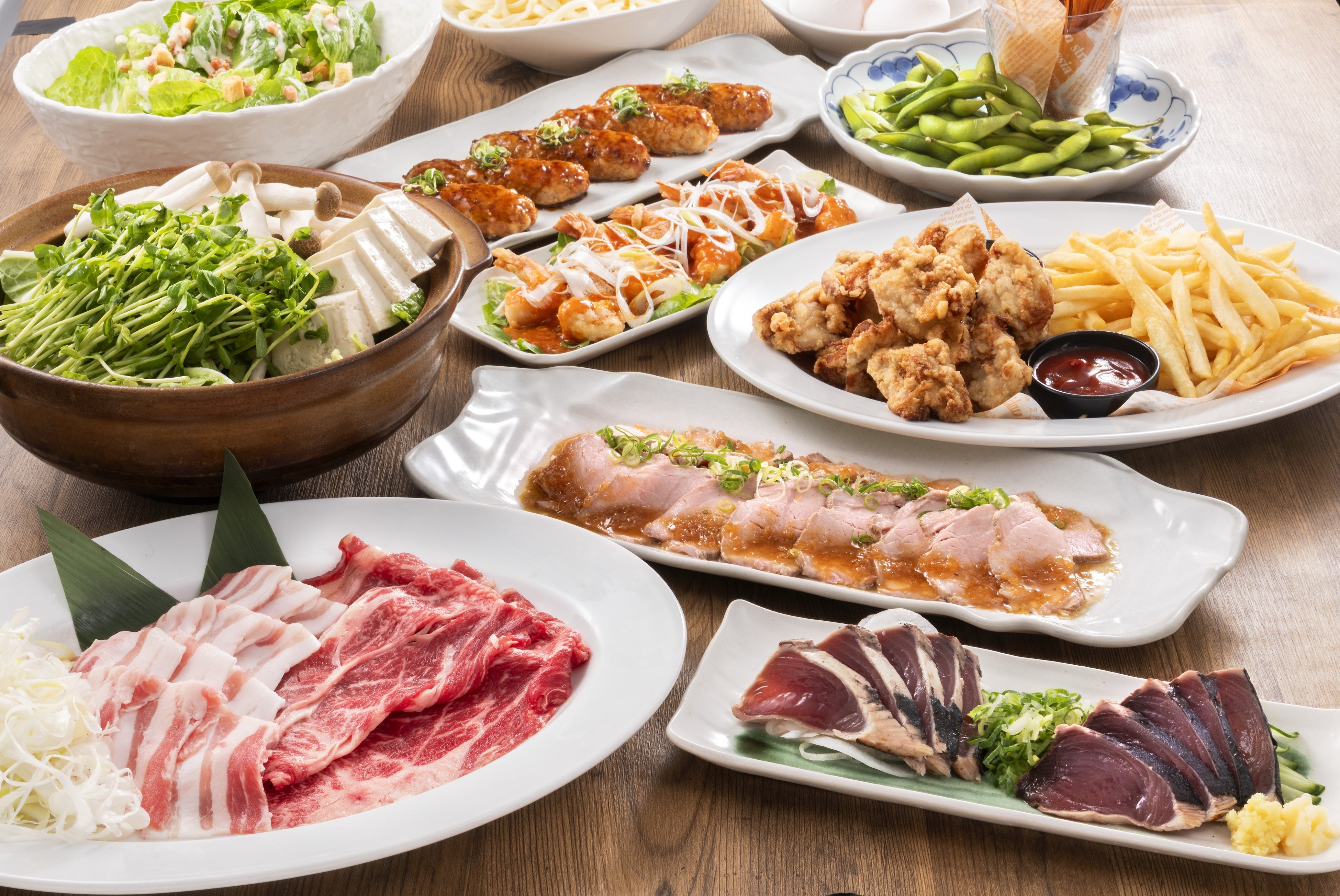 ※早期予約特典の肉2倍は枝豆・フライドポテト食べ放題に変更できます。