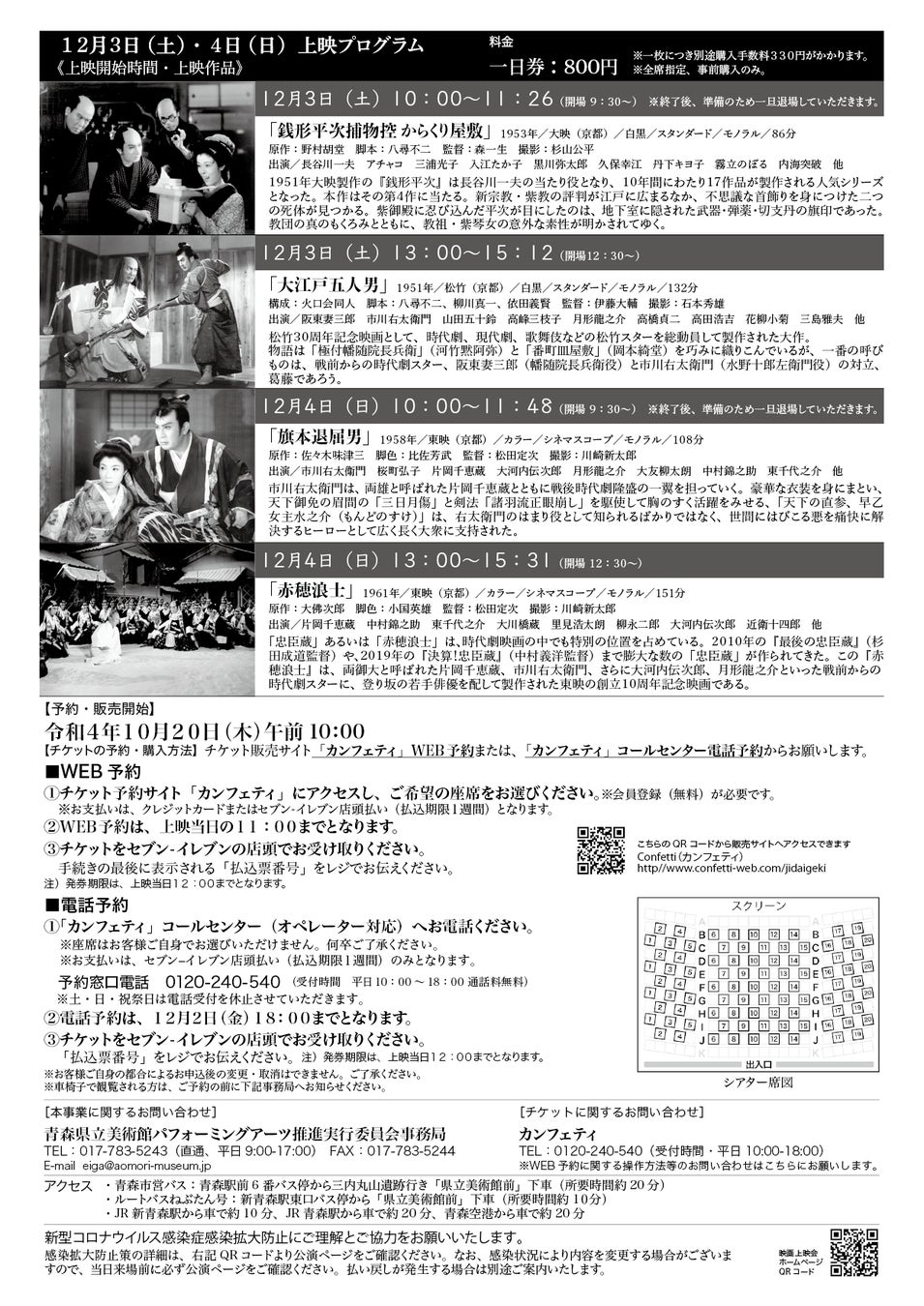 青森県立美術館映画上映会『熱狂の時代劇~35ミリフィルムで蘇る時代劇スターの競演~』開催決定 カンフェティでチケット発売