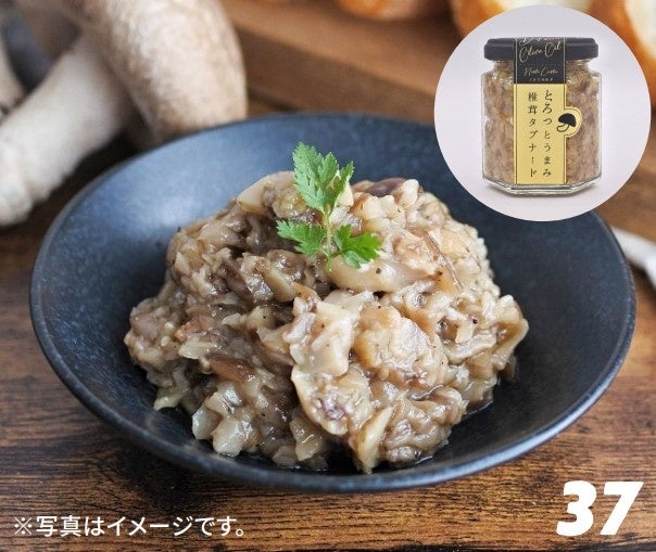 秋田県産椎茸を刻み、しょっつると塩麹で仕上げたうまみたっぷりのペーストです。ゆで卵や生ハム、ツナなど、お好みの具材と合わせてカナッペで楽しむのがおすすめ。白ワインとも好相性です。