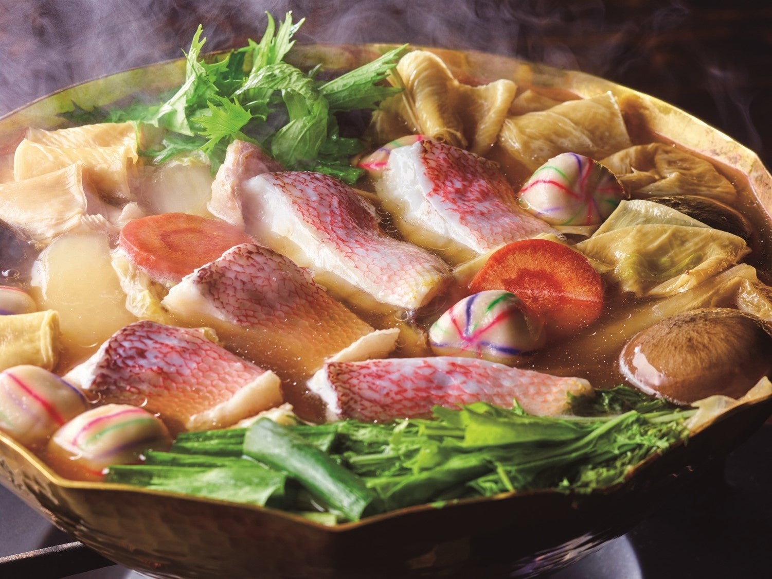 若狭湾で獲れるアマダイのなかから、姿かたちの美しさなど、基準を満たしたものだけがその名を許される若狭ぐじ。京都の名料亭「祇園末友」の末友久史監修による贅沢な鍋がご堪能いただけきます。