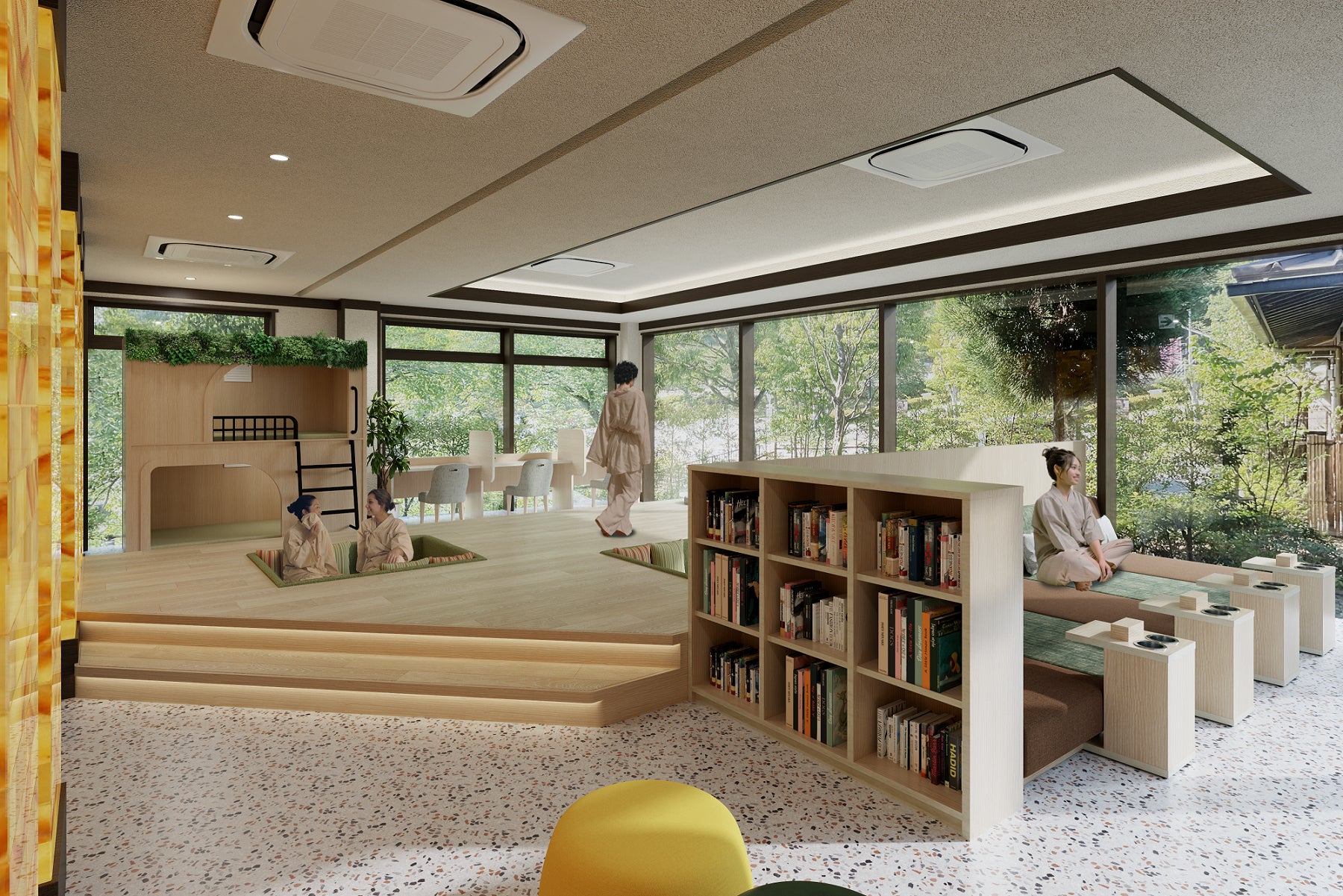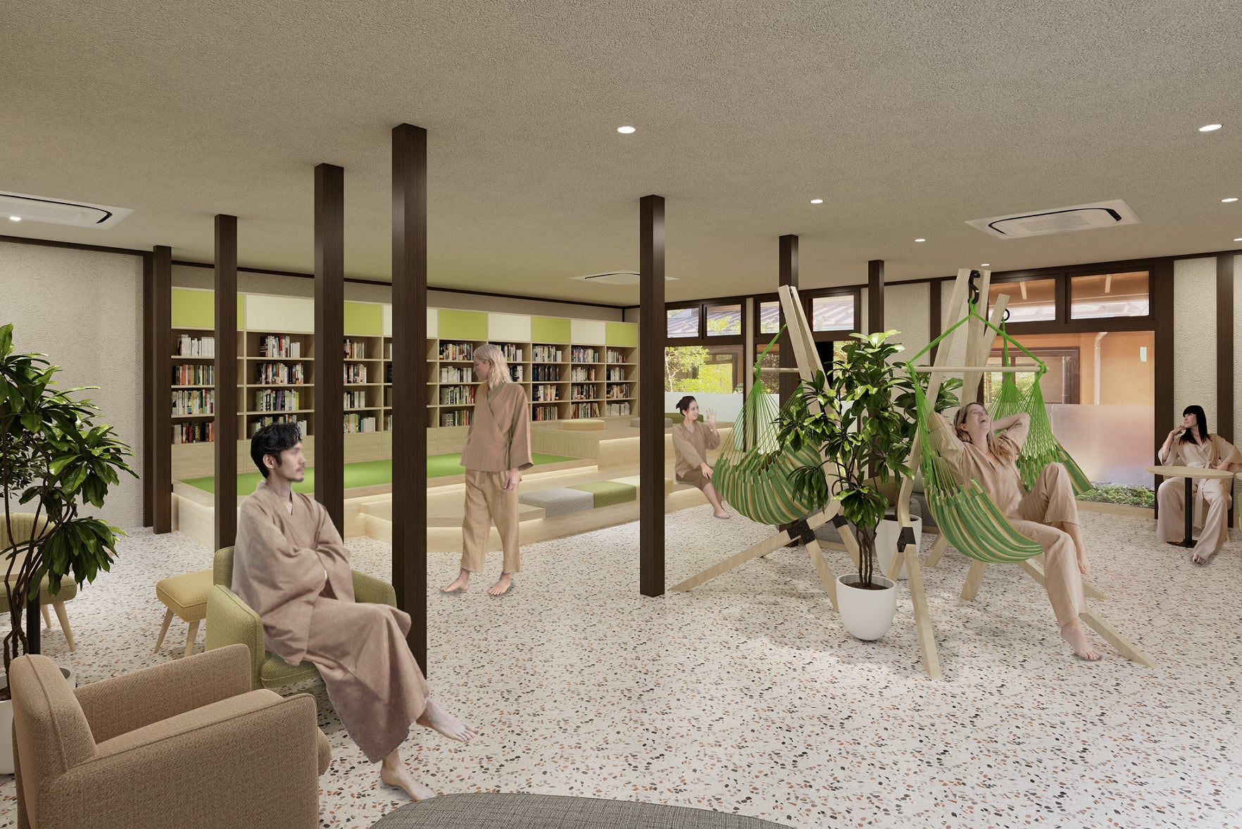 「ゆめうるり」は相模湖の森をイメージした木調とグリーンの色合いが心地よく、温かみのある岩盤浴&リラクゼーションラウンジです。人気の岩盤浴以外に、ハンモックチェアや身体を包み込むような円形の掘り込みベンチ、寝転んでくつろげるソファー、周りが気にならない半個室の「おこもりスペース」など、その日の気分に合わせて過ごせる大人のための癒しの空間です。(ご利用は中学生以上のお客様限定)