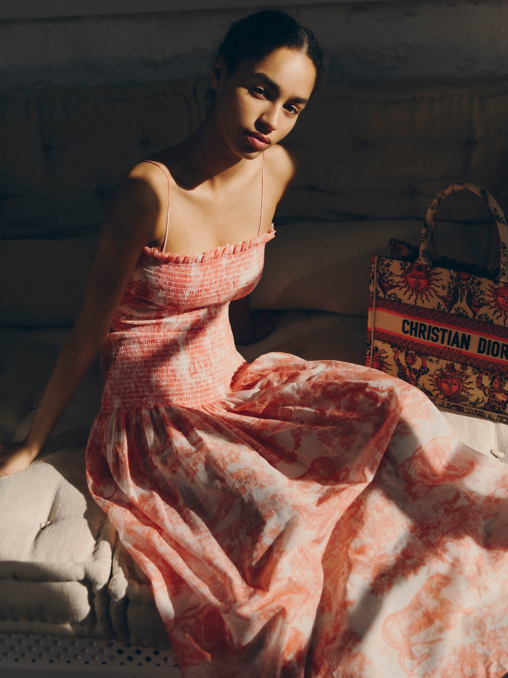 創設者クリスチャン・ディオールが培ってきた旅に対する尽きない夢へのオマージュを捧げ、マリア・グラツィア・キウリが考案した「ディオリビエラ」カプセル コレクション。その新しいビジュアルと動画が到着しました。メゾンの永遠のシンボルのひとつである「トワル ドゥ ジュイ」が、豊かな自然と、連なる太陽のスケッチを通して、2つのユニークなバージョンで再登場します。「トワル ドゥ ジュイ ソヴァージュ」と「トワル ドゥ ジュイ ソレイユ」と名付けられたこれらのモチーフは、ネイビーからウォーターグリーン、パウダーピンク、レモン、コーラルまで、魅惑的で爽やかなカラーパレットで展開されます。象徴的なモチーフは、ドレス、スカート、ブラウス、トップスのシリーズに華を添え、フレッシュでのびのびとした夏らしいワードローブを構成します。「レディ D-ライト」と「ディオール ブックトート」バッグには、この魅惑的なプリントがあしらわれ、「レディ D-ジョイ」にはウィッカーで再解釈されたプリントが施されています。ヨガマット、パラソル、デッキチェアなど、「ディオール メゾン」の夏の必需品は、余暇の歓びや軽やかさを帯びた甘美なライフスタイルへのオマージュを永続させます。「ディオリビエラ」カプセル コレクションは、ポルトフィーノからミコノス島といった、世界中のリゾート地やポップアップストアで展開され、日本においては全国のディオール ブティックおよび公式オンラインブティックでご覧いただけます。