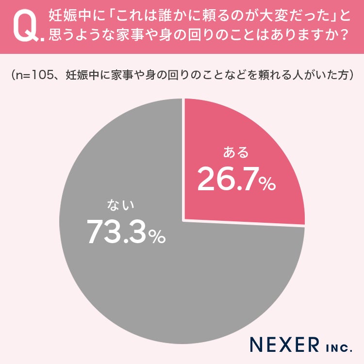 ■26.7%が妊娠中に「これは誰かに頼るのが大変だった」と思うような家事や身の回りのことが「あった」